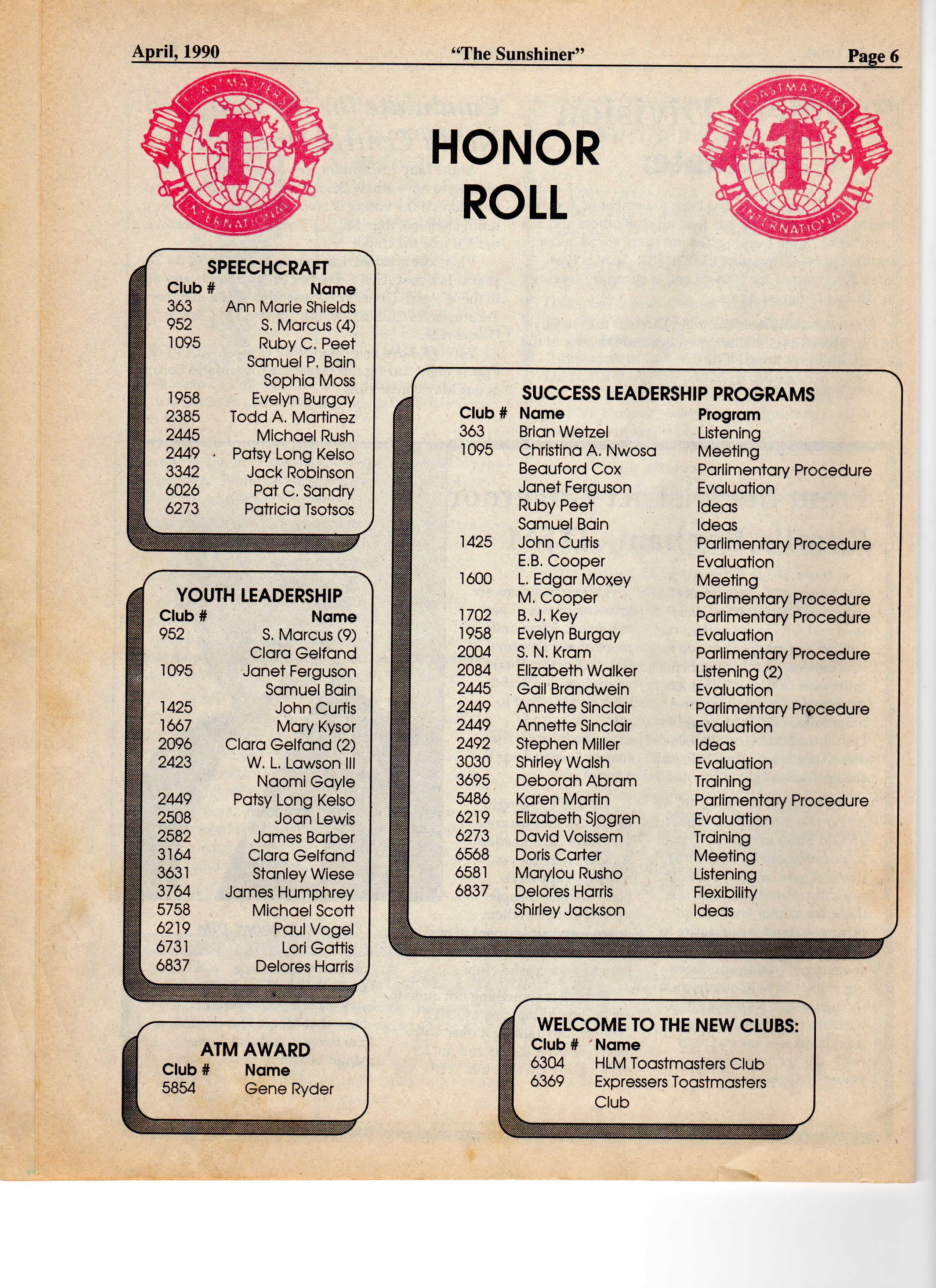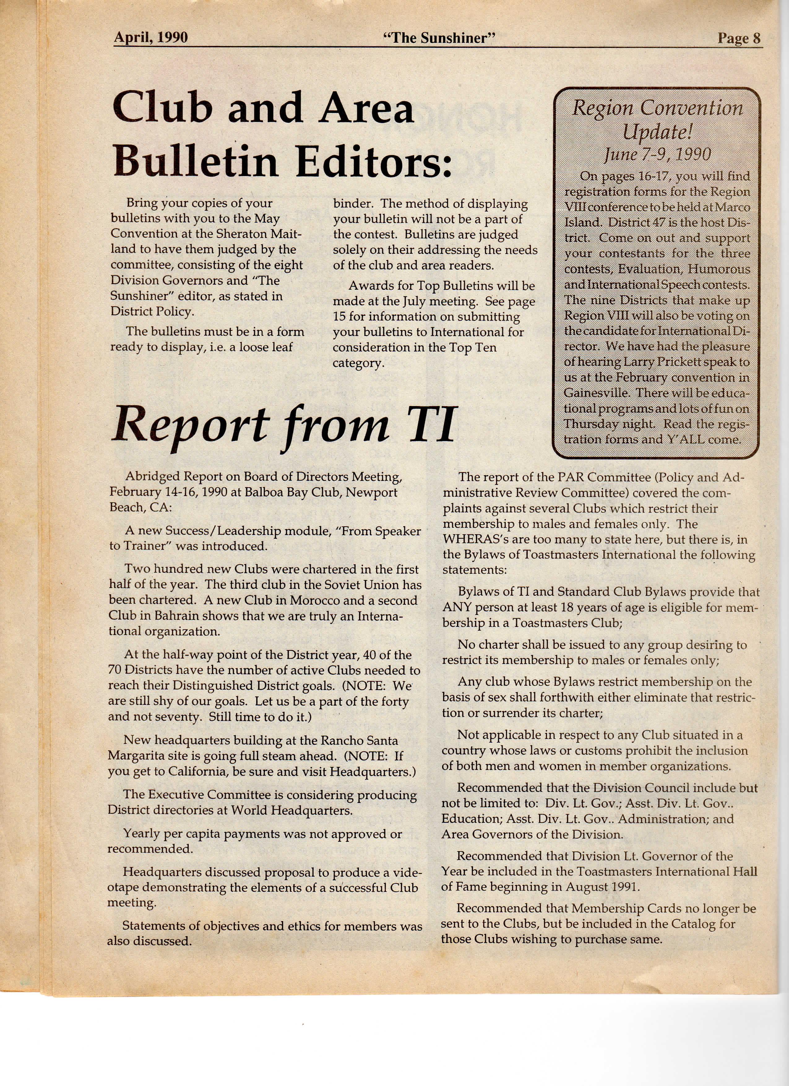 April, 1990 "The Sunshiner" Page 20