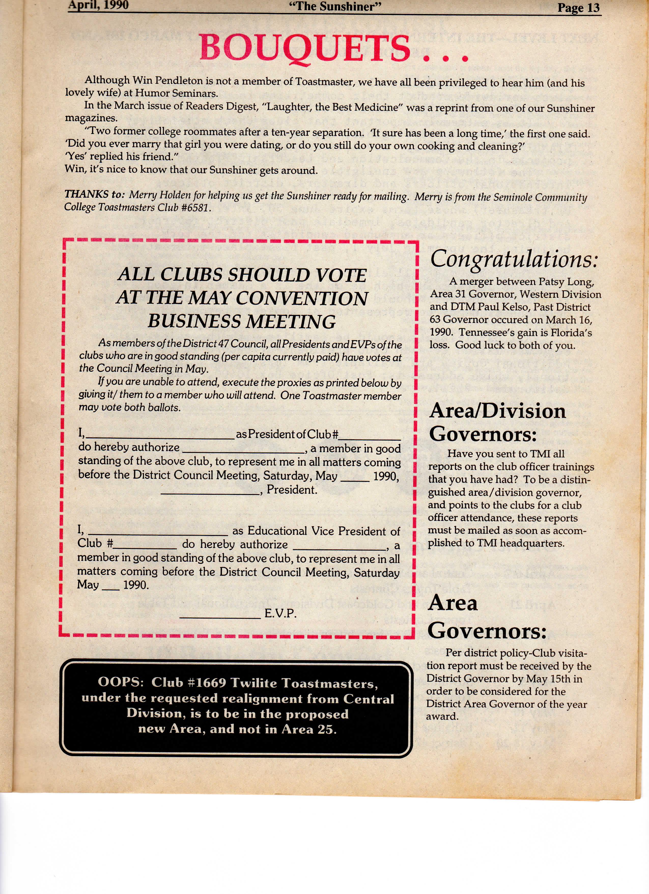 April, 1990 "The Sunshiner" Page 13