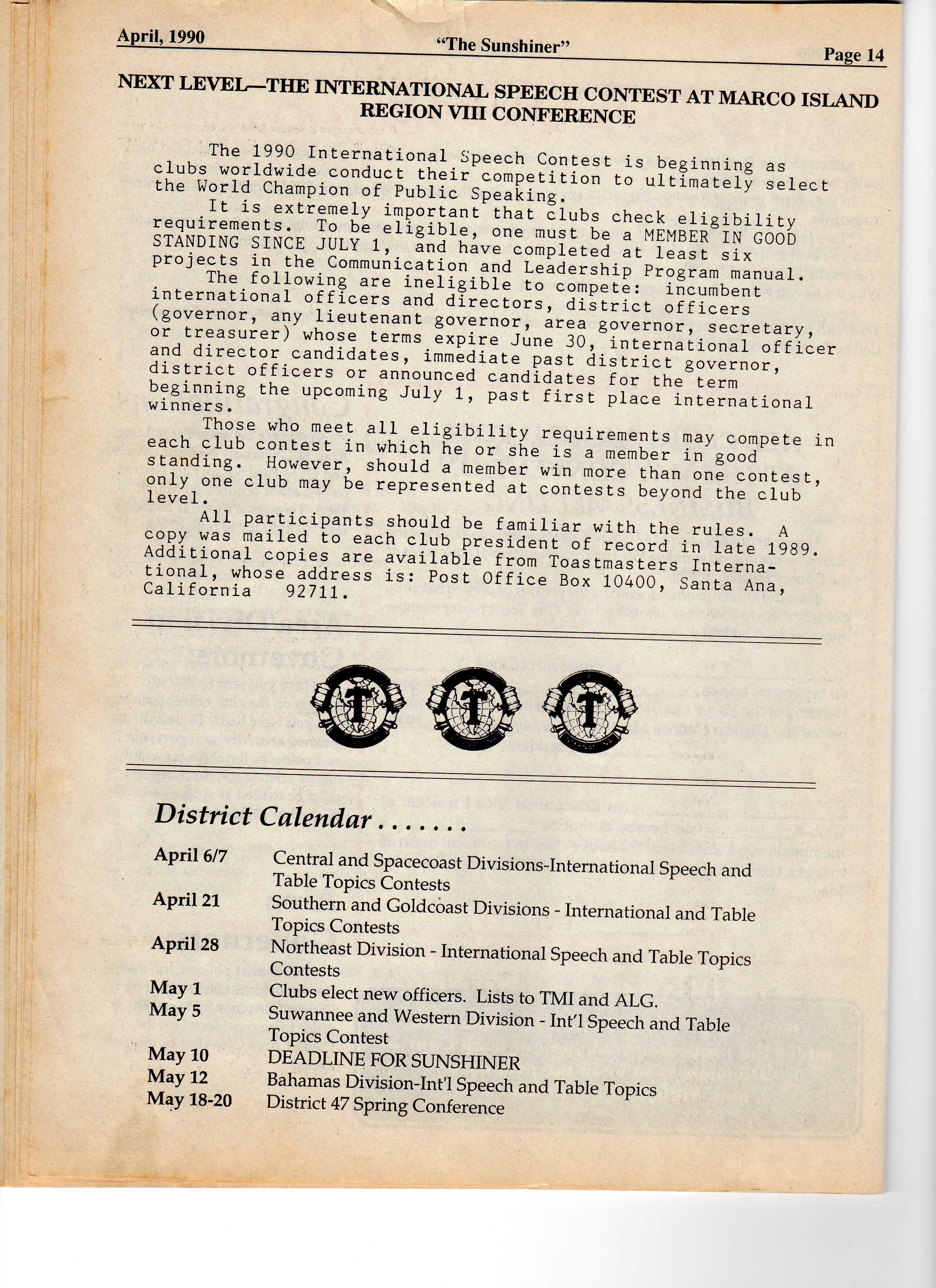 f OFFICIAL PUBLICATIO N OF DISTRIC T 47 SUNSHINE DISTRIC T VOLUM E XXXI, NO. 7 APRIL, 1990