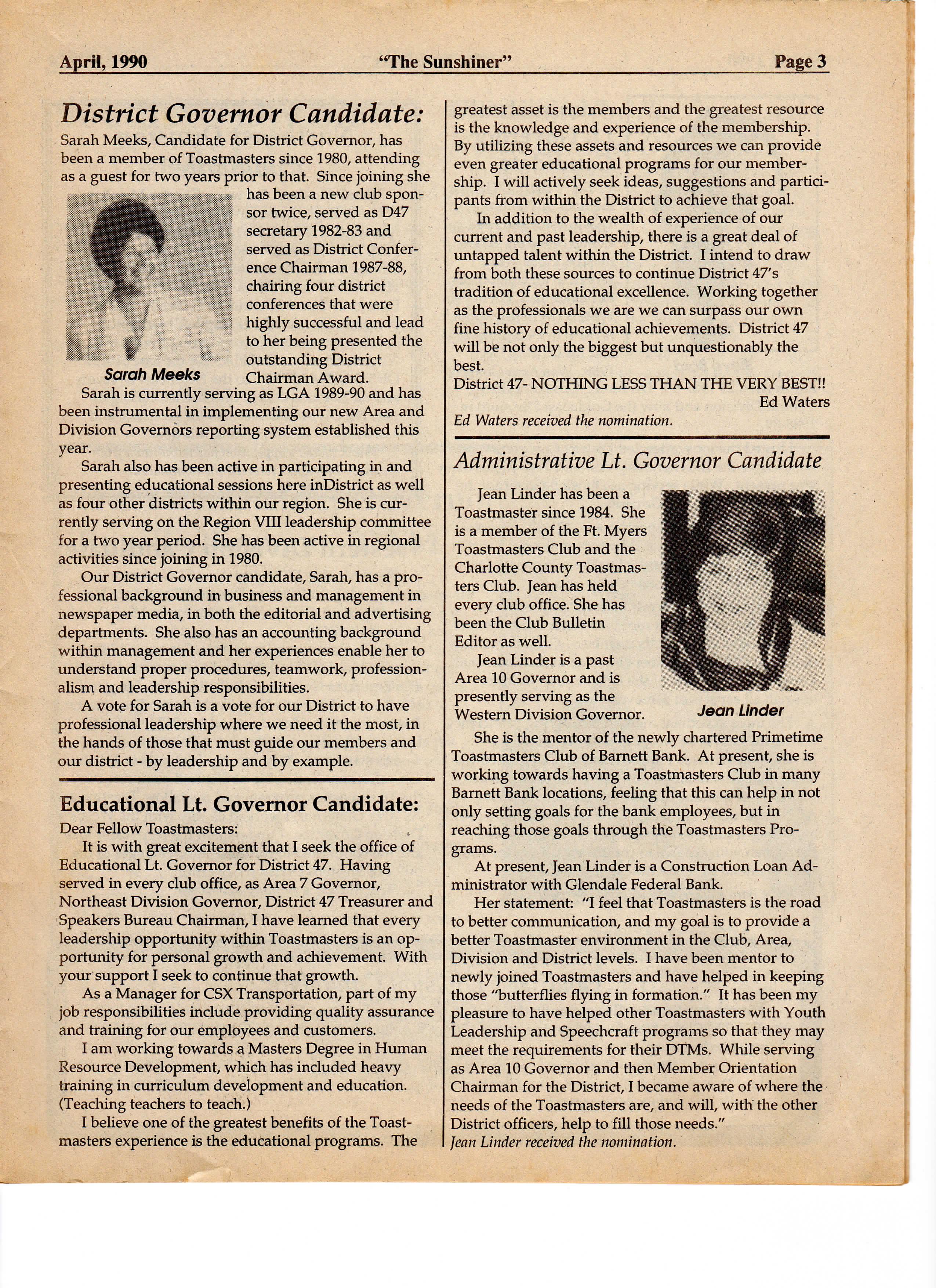 April, 1990 The Sunshiner Page 3