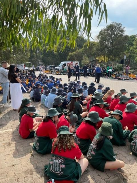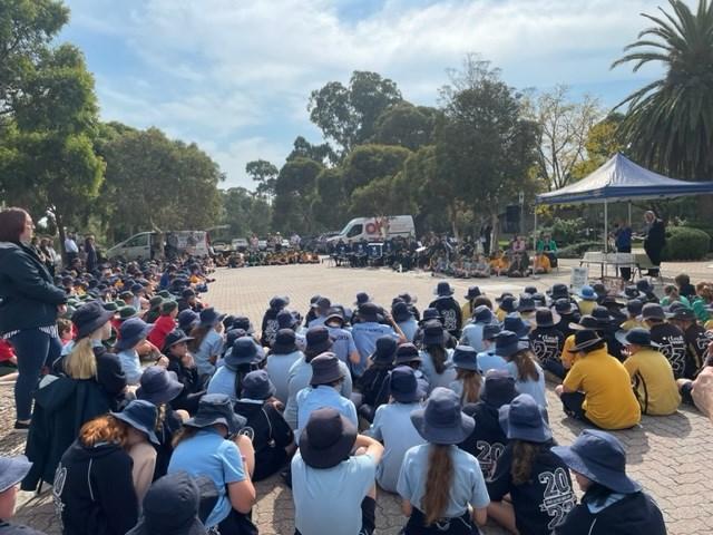 The Rotary Club of Boronia again organised an ANZAC commemoration Service for Grade 5/6 Students from KNOX Primary schools at the Tim Neville Arboretum and Cenotaph. This is the 8th year that theClub has organised the Service and this year, with again funding from KNOX Council, over 450 students and staff attended and enjoyed the warm autumn day and wonderful location at the Arboretum whilst commemorating ANZAC.