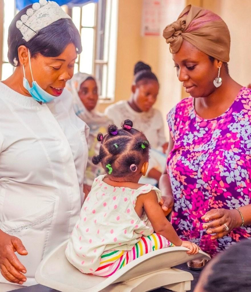 Routinechildweighingforgrowthmonitoringand promotion(GMP)exerciseatDeiDei ComprehensiveHealthCentre,Abuja,Nigeria. February2022.Thisactivityispartofalarger maternalandchildhealthprogramledbythe RotaryActionGroupforReproductive,Maternal andChildHealth(RMCH)andRotaryDistrict1860in GermanyandRotaryDistrict9125inNigeria,in partnershipwiththeNigeriaFederalMinistryof Health.Thegoalistoreducematernaland neonatalmortalityinthetargetedareasinNigeria by25%,reaching2.3millionpeoplewithkey messagesandservicesaimedatincreasingthe numberoffamiliesparticipatingincontinued clinicalcarethroughformalhealthsystem services.Theprogramistherecipientofthe 2021-22RotaryFoundationProgramsofScale grant.