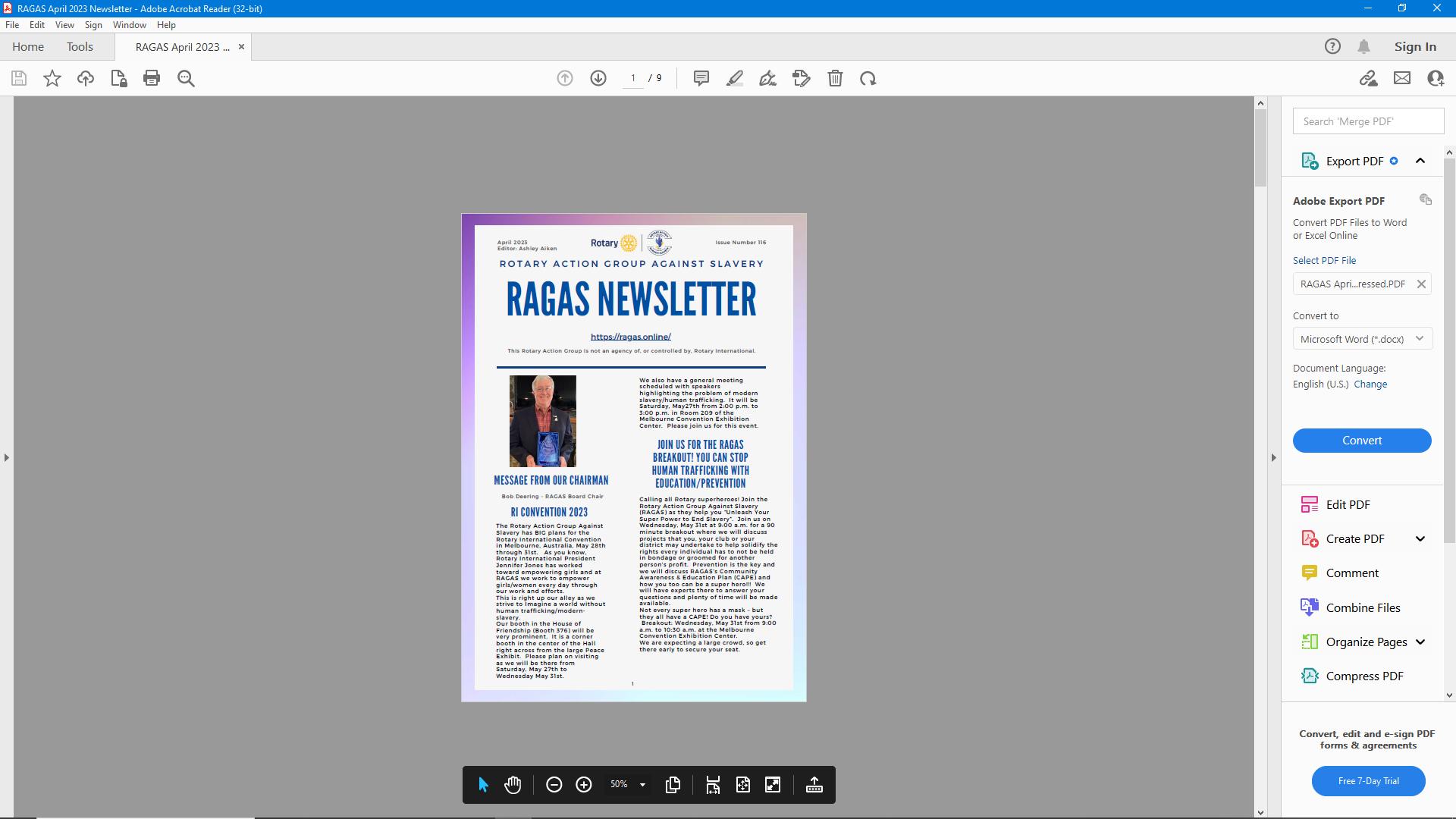 The RI Convention is commencing on the 27th to 31st of May 2023 only four weeks away. Check out the Convention website to discover what’s on when. It’s not too late to book, and I hope to see you there. www. rotarymelbourne2023.org