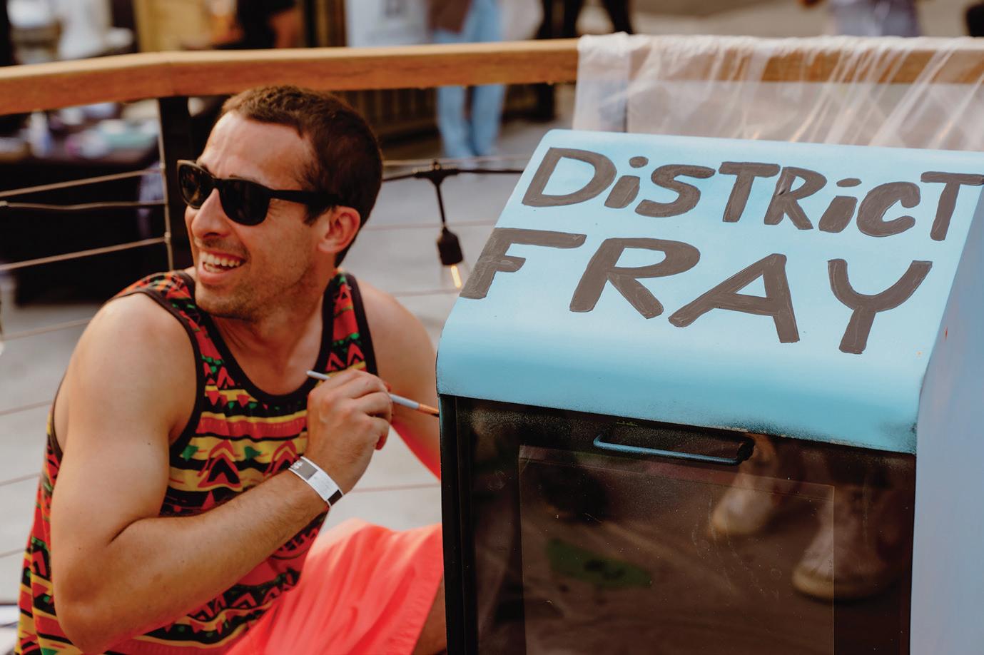 attendees including roller skating and skateboarding activations, live painting of murals and 20+ District Fray Magazine boxes (keep your eyes peeled for where these pop up around the city!), an impromptu dance party with endless beats from DJs Jerome Baker III and Quartermaine, plus tarot reading, a pop-up vintage clothing market and a disco ballthemed photo activation.