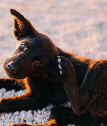 Fleas are the number one cause of skin disease in pets and can cause problems ranging from simple itchiness to weeping sores, scaly skin, and infection. Some animals are allergic to flea bites (a condition known as Flea Allergy Dermatitis), where one bite sets off an auto-immune reaction. All skin conditions require veterinary treatment. Fleas breed at an enormous rate. The fleas you see on your dog represent only 5-10% of the fleas within their environment. The rest of the population is represented in the egg and larval stages found in your carpets, furniture, bedding, and garden.