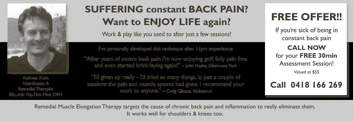 Specific stretching is almost always helpful to aid patient recovery from lower back pain. Suffering lower back pain? Give Andreas a call at the clinic on 0418 166 268.