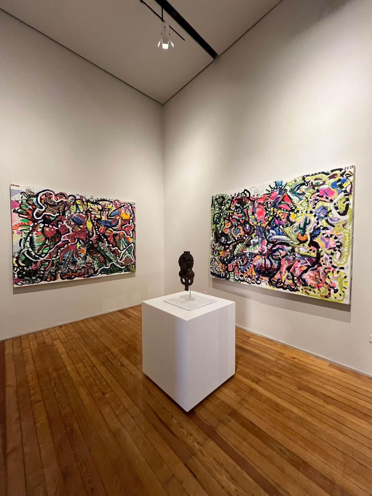 Su obra transita de una figuración neobarroca a una abstracción neoexpresionista visceral e inmediata con la consistencia de símbolos arquetípicos simples distintivos creando una narrativa subjetiva para el espectador.
