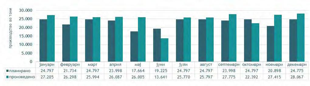 Во погонот Челичарница во текот на целата 2022 произведени беа 247.013т слабови, што споредено со претходната 2021 година кога беа произведени 314.340т. претставува намалување од 21%.