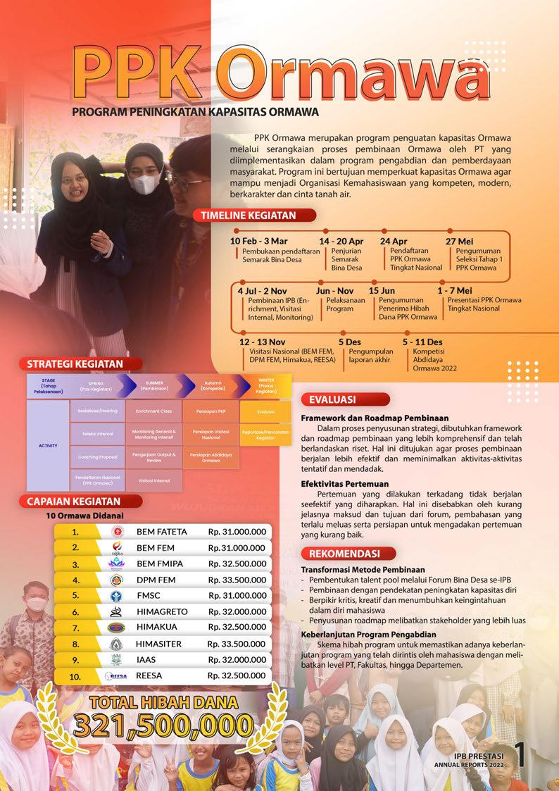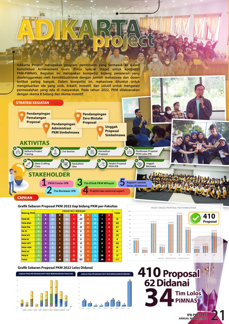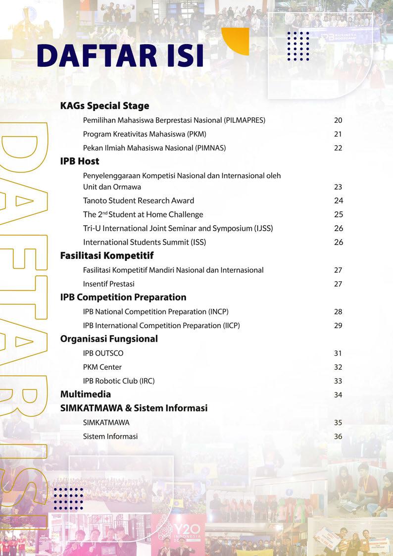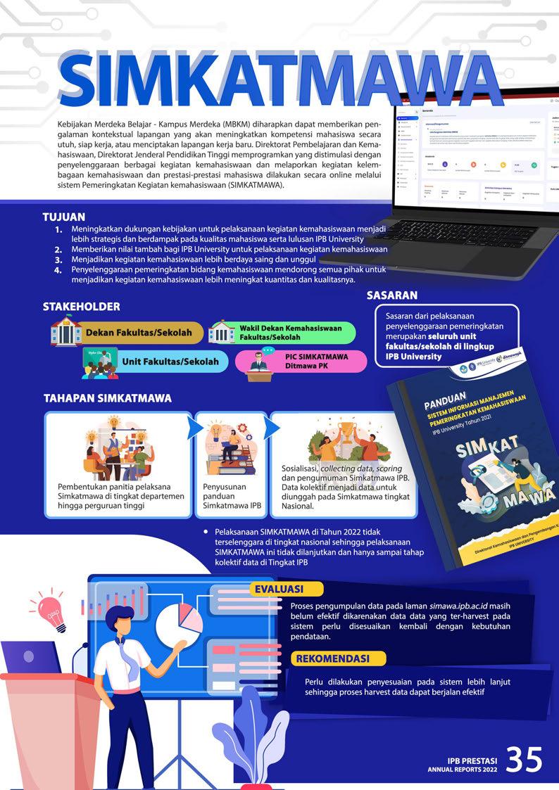 Laporan ini berisi rekap capaian kegiatan dan jgua prestasi mahasiswa yang diraih selama masa 2021 lalu. Dengan berbagai capaian kegiatan dan prestasi yang telah dilaksanakan dan didapatkan. Kami ingin menyampaikan terima kasih kepada para pimpinan IPB, Fakultas/Sekolah dan Departemen, pada pimpinan Lembaga/ Direktorat/Biro/Unit terkait, para dosen pembina/pendamping, para mitra dan donator, pada kasubdit dan staf di direktorat kemahasiswaan dan pengembangan karir IPB yang luar biasa. Serta semua pihak yang telah mendukung dan bekerjasama.