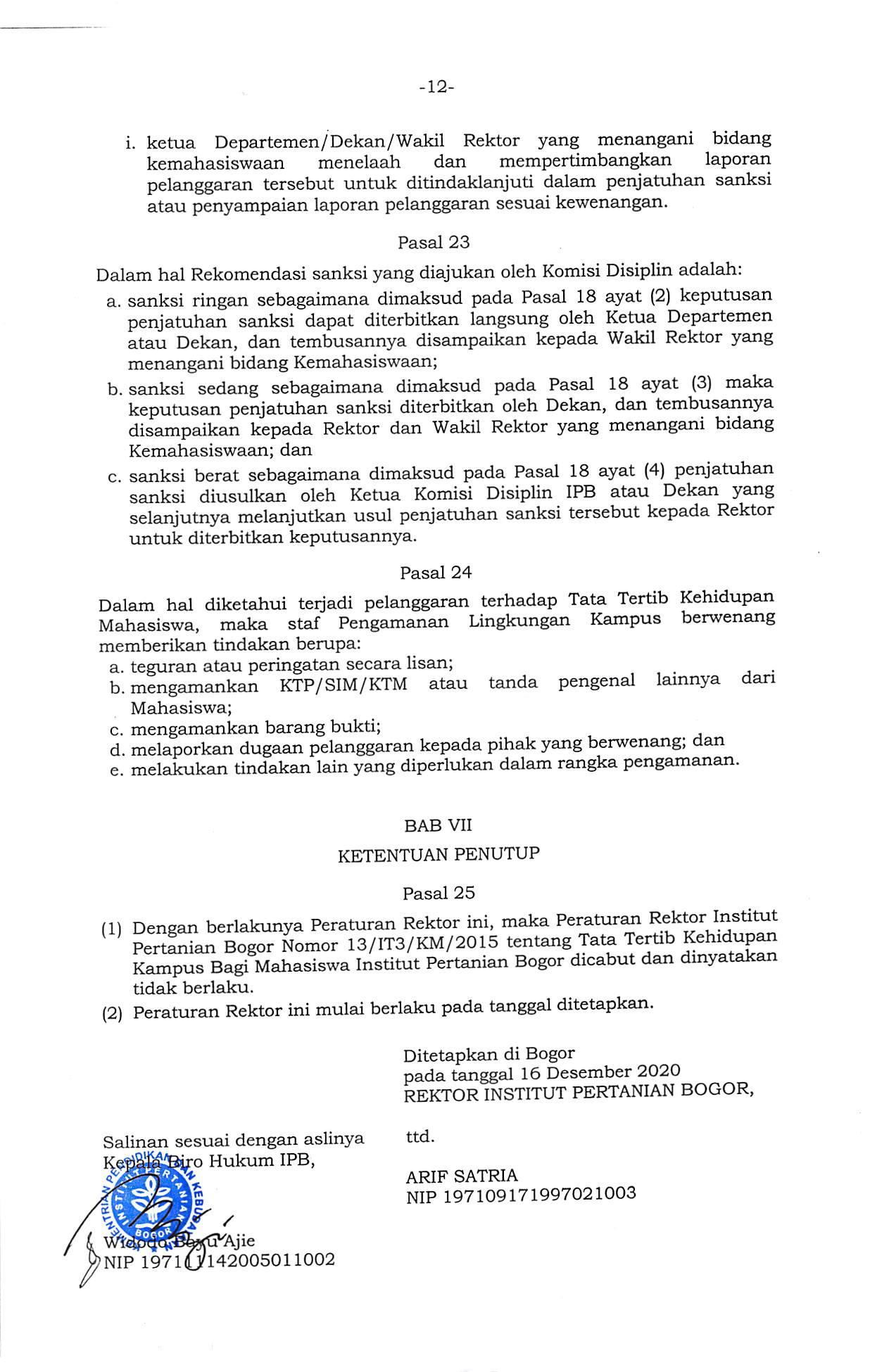 Berdasarkan Peraturan Rektor Institut Pertanian Bogor Nomor 32/IT3/KM/2020 Tentang Tata Tertib Kehidupan Mahasiswa Institut Pertanian Bogor