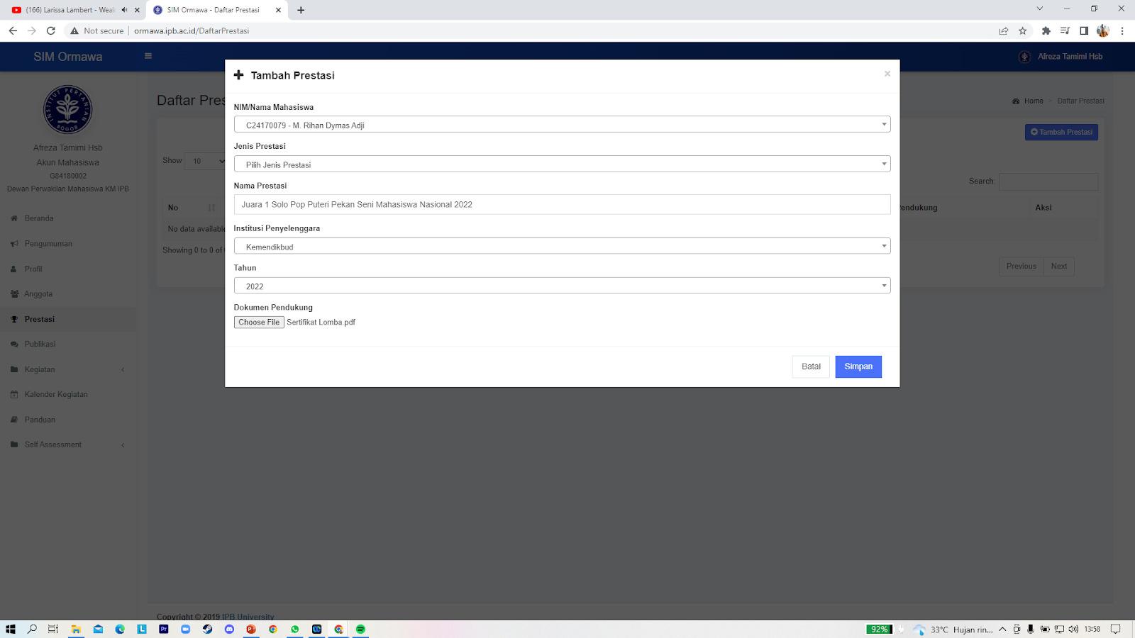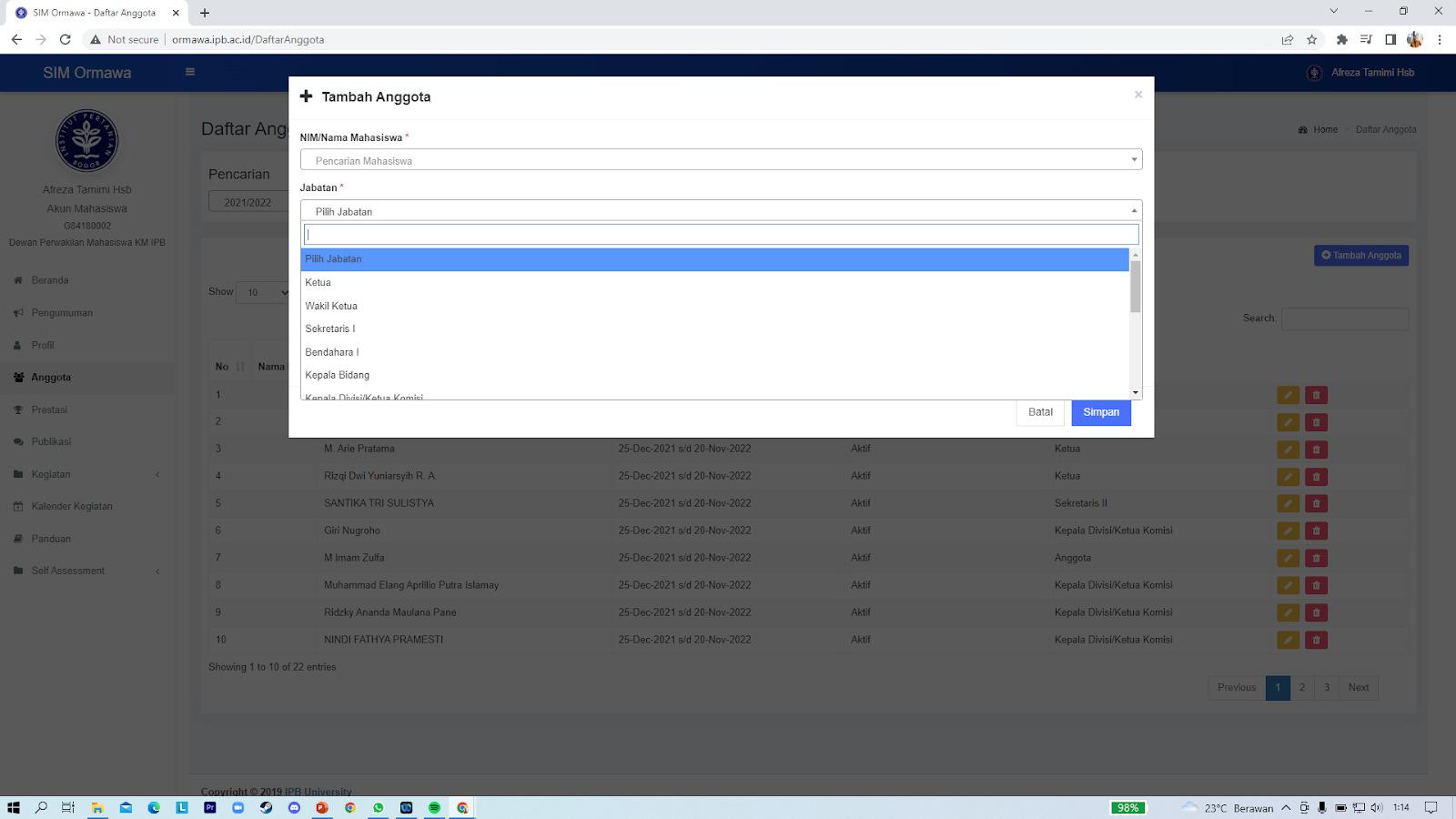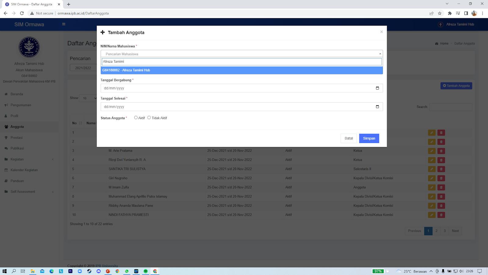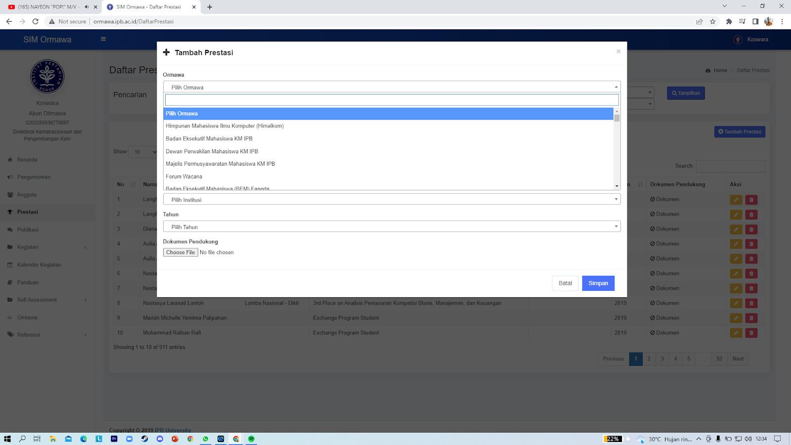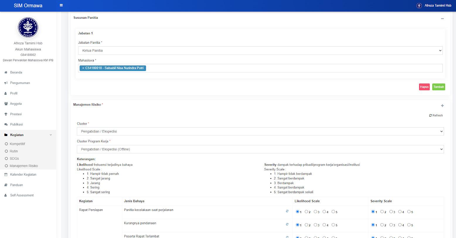 Salah satu bentuk implementasi paperless di IPB dan dalam mewujudkan Rencana Strategis IPB 4.0 yaitu dengan pembuatan Sistem Informasi Manajemen Organisasi Mahasiswa (SIM Ormawa) IPB. SIM Ormawa