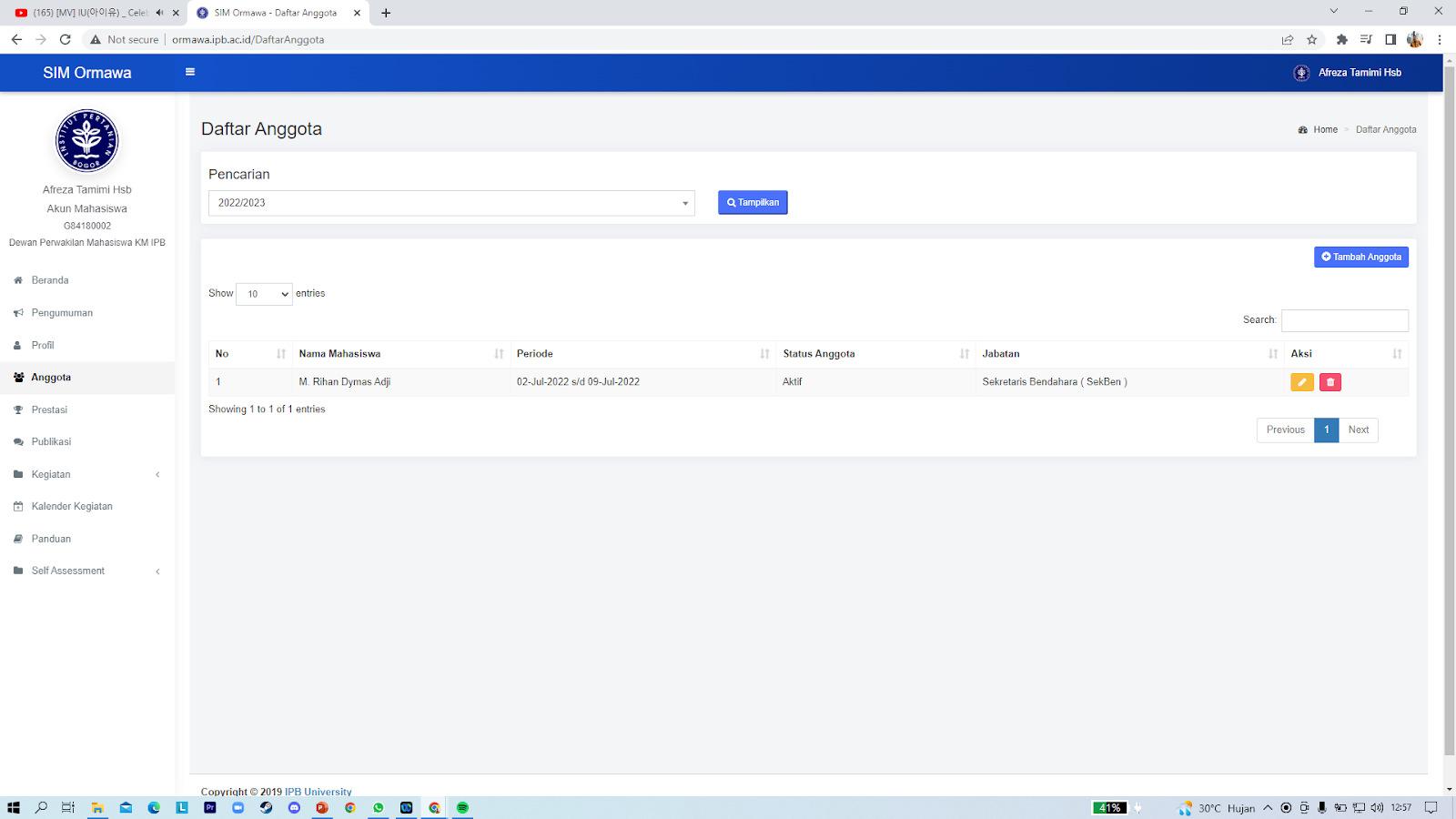 Mengakses laman http://ormawa.ipb.ac.id/ dan masuk ke laman menggunakan akun ketua organisasi kemahasiswaan.