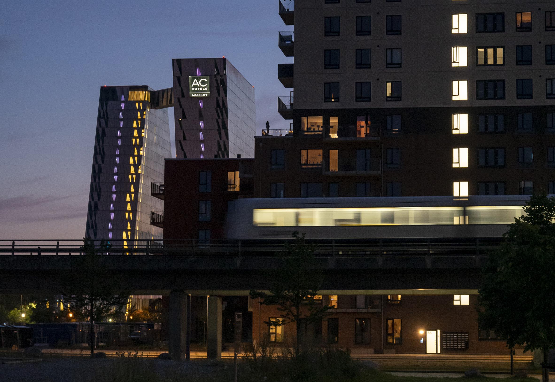 I erhvervsområdet finder du også det prisvindende designhotel AC Hotel Bella Sky, der er Nordens største, og som indeholder restauranter, spa og fitness. Overfor hotellet ligger kvarterets nye multiarena,