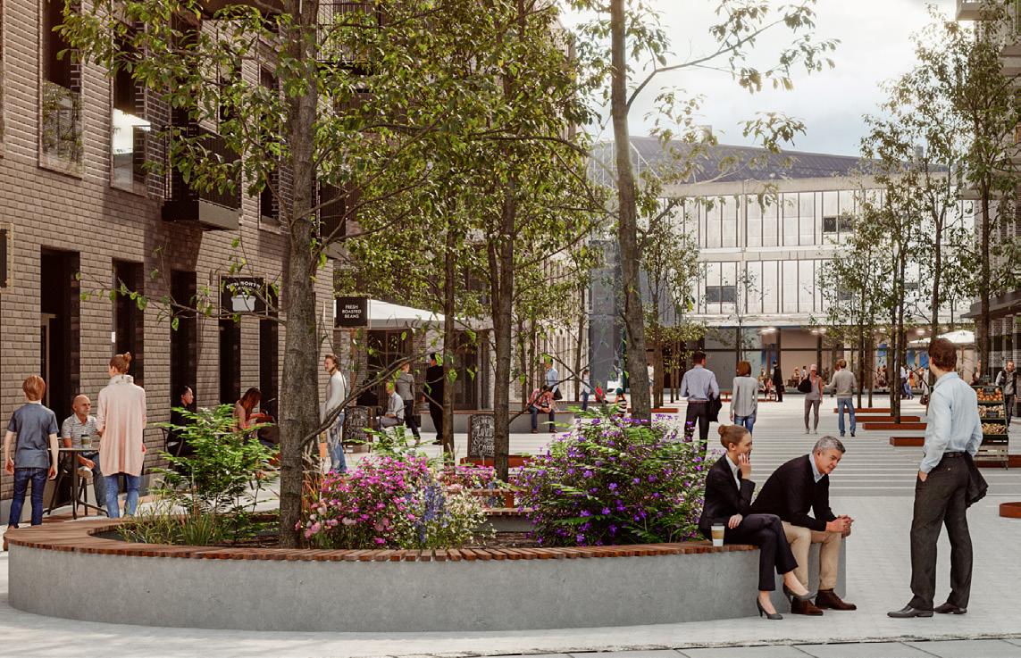 På vejen til dit kontor passerer du også Bella Have, som bliver et grønt parkrum med planter, træer og siddeelementer. Her vil de tilstødende erhvervsejendomme få åbne stueetager med mulighed for at etablere café eller vinbar ud mod haven.