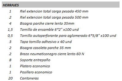 *Suministros: 2 costados, 2 frontales, 1 frente falso, 1kit riel tipo pesado