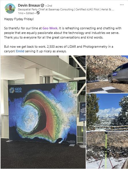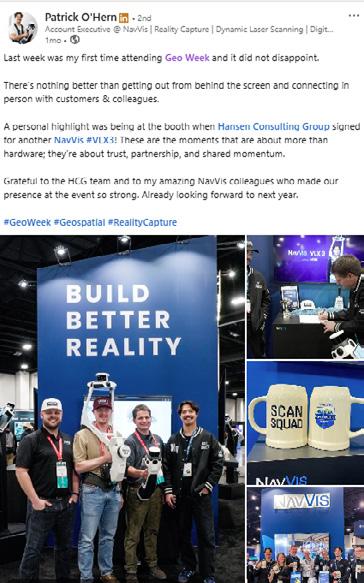 Geo Week absolutely impressed me this year. As a first-time attendee, the scale, energy, and professionalism were on another level. It was easily the largest and most engaging industry event I've been part of... I found the amount of quality, in-person time with partners and customers to be invaluable. The whole experience was energizing and forward-thinking. Already looking ahead to Salt Lake City!