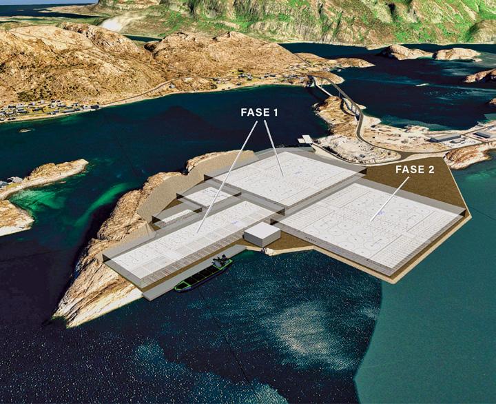 — Det meste av slam og organisk avfall som fôrrester og fiskeavføring samles opp og utnyttes som en ressurs gjennom et integrert slam fangstsystem i anlegget, svarer Thilesen. Han mener lang levetid, lave vedlike holdsbehov og saltvanns bestandighet, samt lavere klimaavtrykk i sementproduk sjonen reduserer klimaav trykket for anlegget som jo er produsert i et materiale som ellers har variabel status slik sett. Oppdrettsvolumet er 37.000 m3, og biomasse tettheten på inntil 75 kilo per m3. I utviklingskonsesjonen som vil bli de første perio dene med fisk i anlegget, er det lagt til grunn utprøving med biomassetetthet på 50 kilo per m3 og totalt 1.849