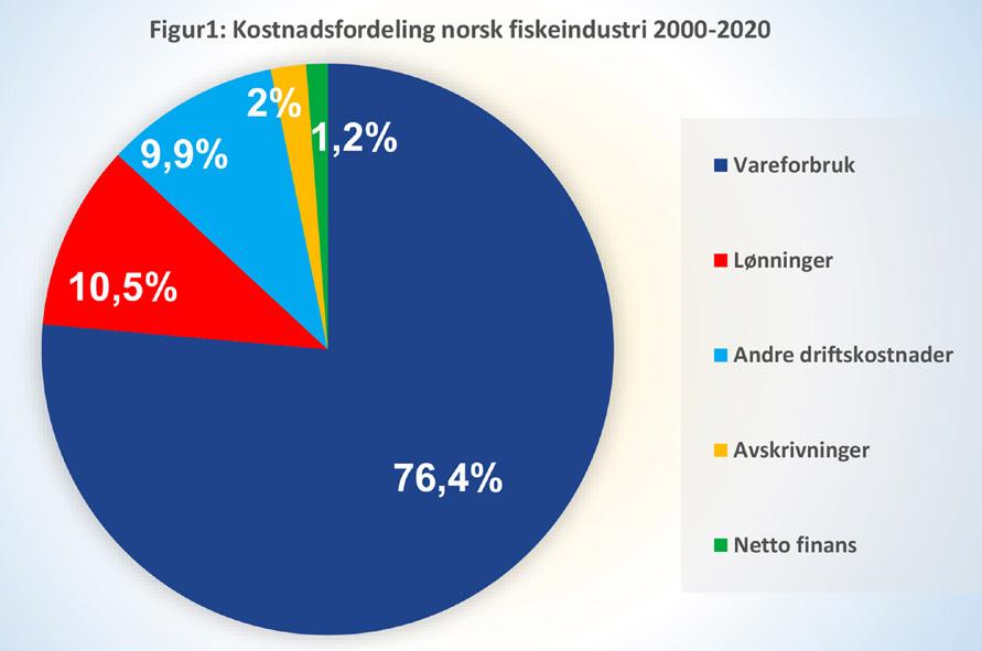 Vel ti prosent til lønn De siste 20 årene har råstoffet stått for hele 76,4 prosent av kostnadene. Lønnskostnadene i fiskeindustrien utgjør bare rundt 10,5 prosent. Bransjen er altså ekstremt råstoffavhengig.