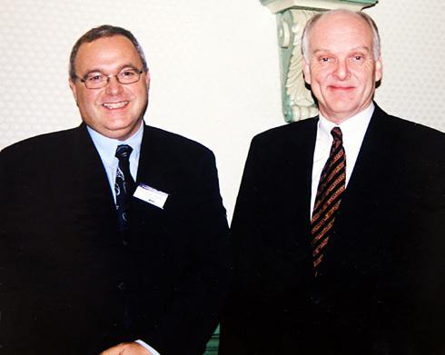 Kjell Inge Røkke kom som en virvelvind inn i norsk sjømatnæring i 1995. I løpet av få år hadde han sikret seg tittelen Norges sjømatkonge. Røkke var flink til å skaffe seg unge og dyktige medarbeidere. Yngve Myhre (t.h.) ble f.eks. konsernsjef i Norway Seafoods i mai 2001 bare 32 år gammel og fortsatte som konsernsjef i Aker Seafoods frem til 2010. Dette bildet ble tatt i 2005. (Foto: HMS)