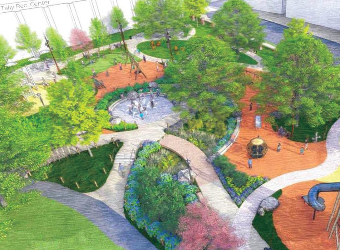The memorials at Mount Olivet Cemetery dot the landscape just north of Nymeo Field at Harry Grove Stadium. Lincoln Elementary School and the Earth and Space Science Lab can be seen beyond the trees. FM