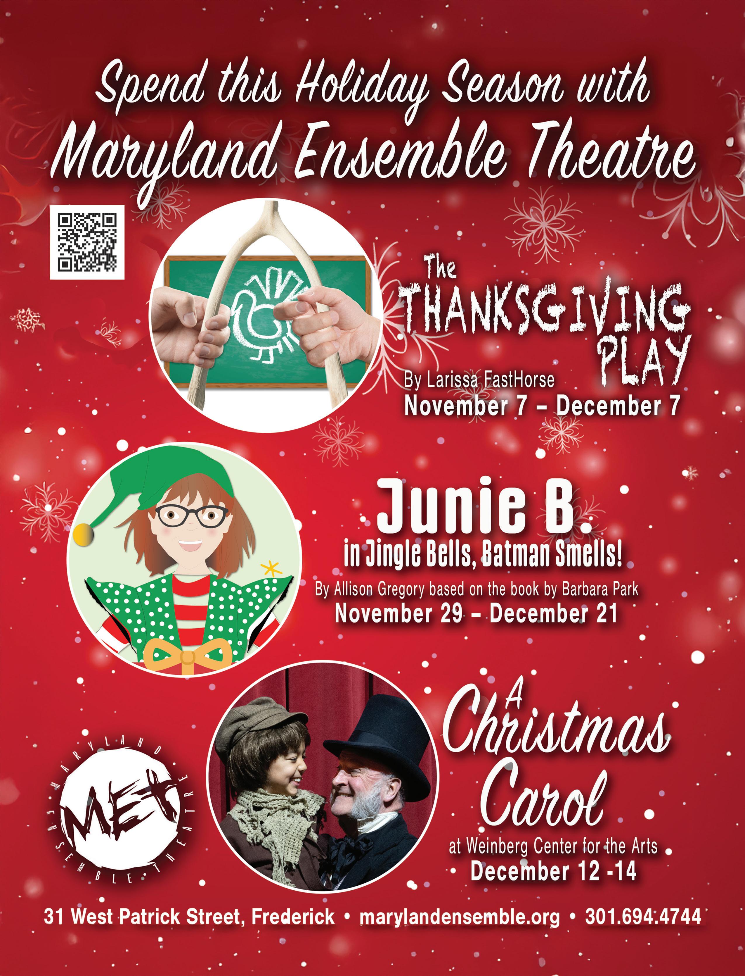 Maryland Ensemble Theatre, 31 W. Patrick St. Back by popular demand, based on the book by Barbara Park, this play follows the feisty and irrepressible Junie B. Jones as she plays Secret Santa to her least favorite classmate, Tattletale May. Don’t miss this family-friendly story full of laughs and life lessons. See website for show times. $. 301-6944744. www.marylandensemble.org FM
