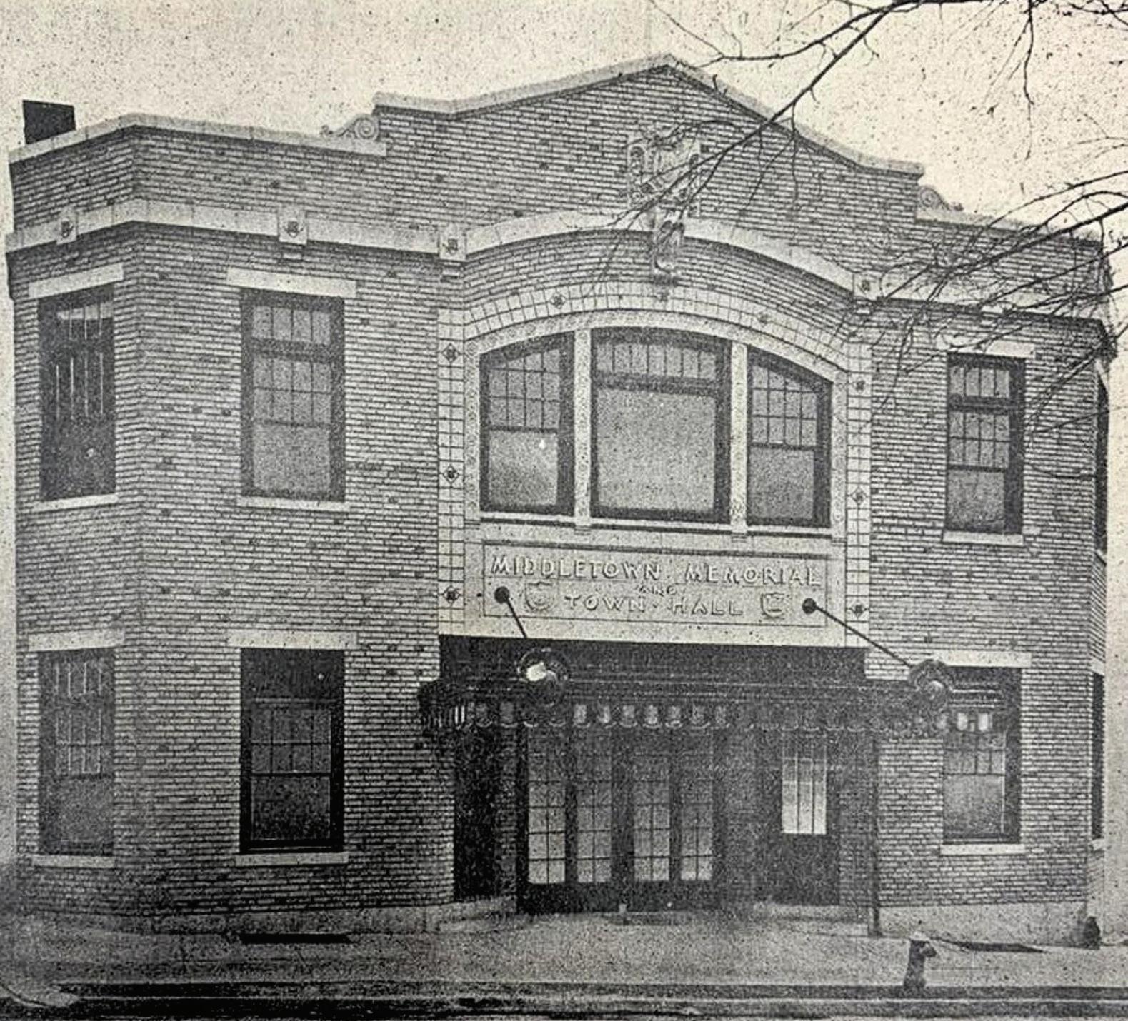 Memorial Hall was dedicated on April 27, 1923. Earl McKinley Kepler, a war veteran and member of the Everhart Post, operated the theater. Audio equipment was added later for showing sound films and the theater hosted stage performances, concerts and high school commencement ceremonies. In the 1930s, the east side of the building was modified to house the Middletown Volunteer Fire Company.