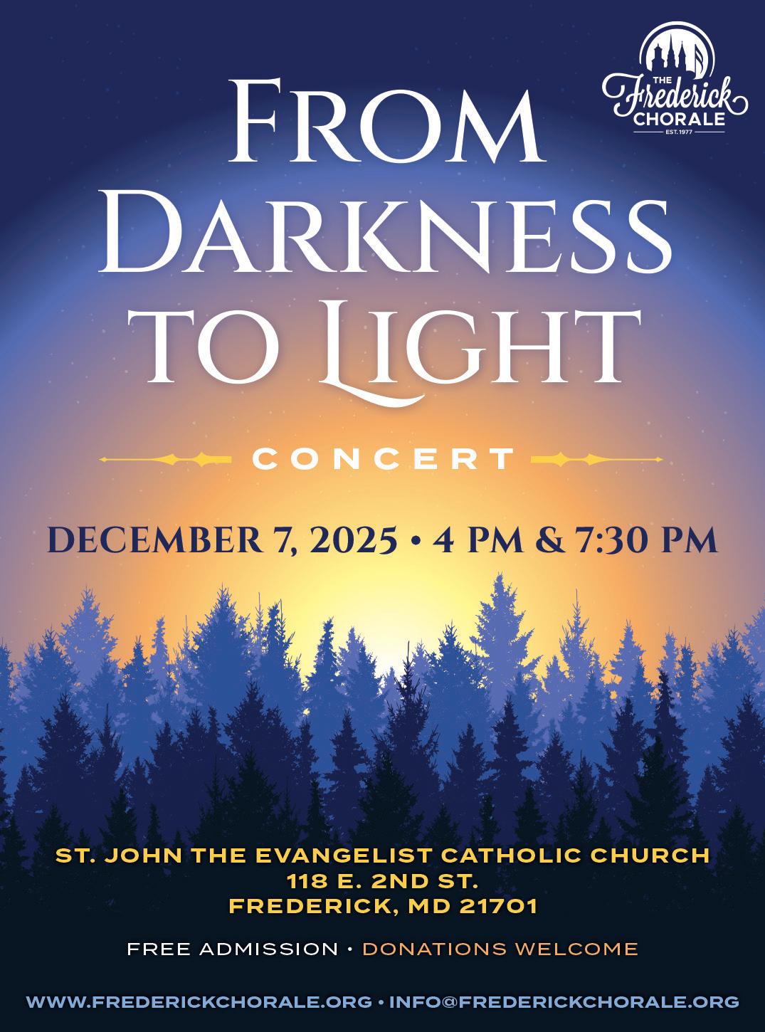 Evangelical Lutheran Church, 31 E. Church St. A heartwarming concert featuring Evangelical Lutheran Church’s youngest performing ensemble, the Mockingbirds, with a special appearance from the Training Chorus. 6:30 p.m. www.frederickmagazine. com/calendar