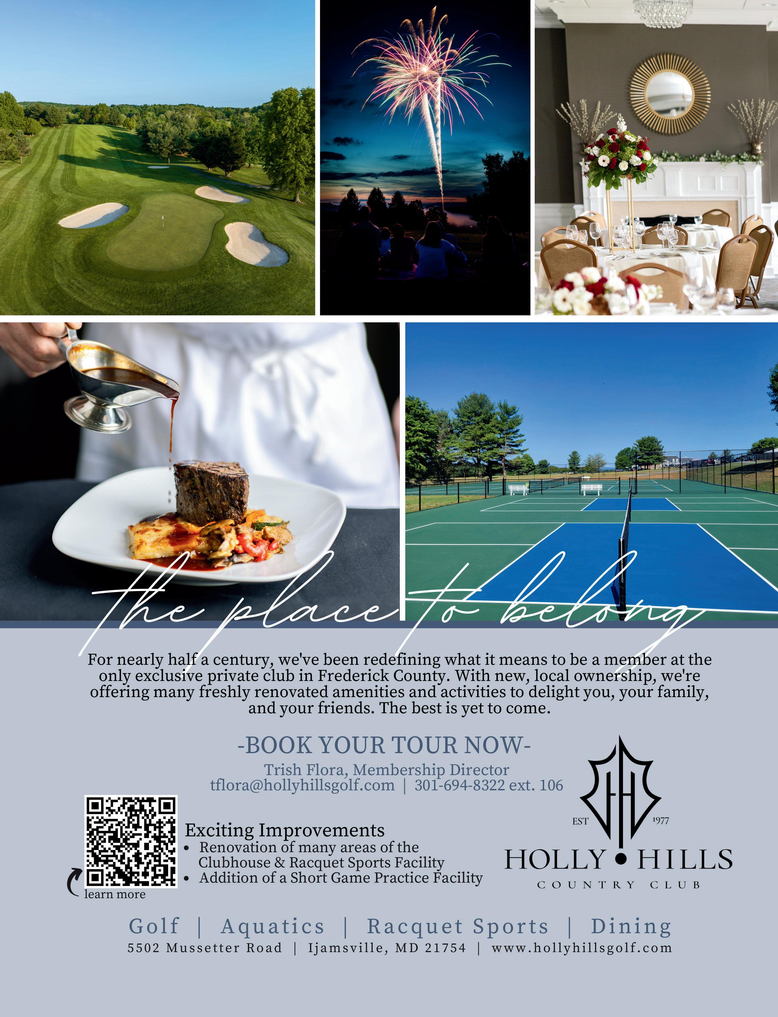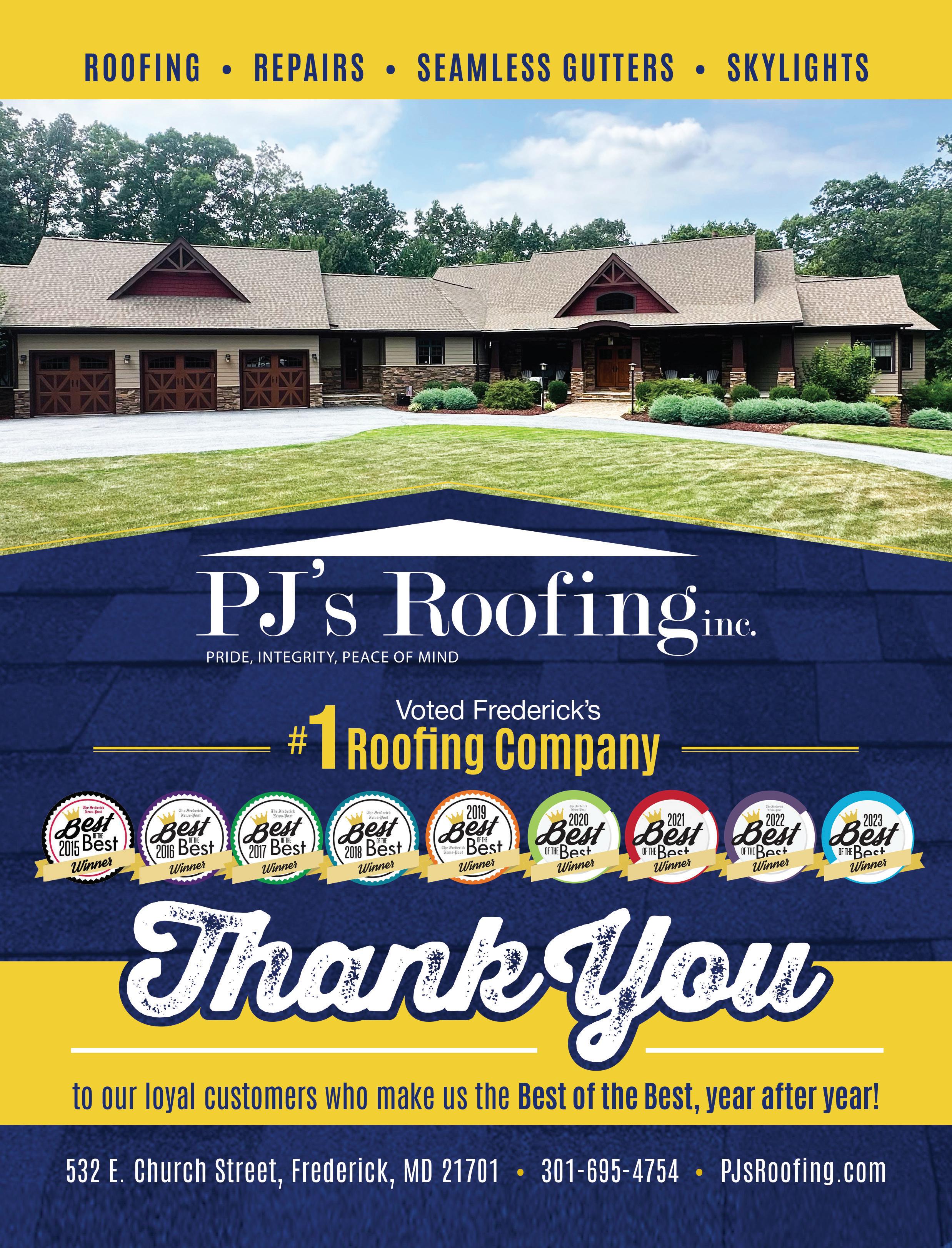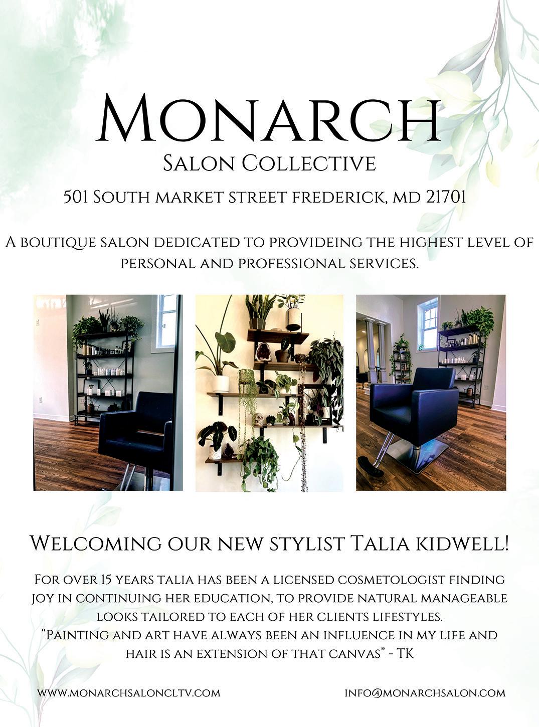4 fredMAG MAGAZINE PUBLISHERS Shawn Dewees / Joseph Silovich Editor-in-Chief Guy Fletcher Assistant Editor Nancy Luse Graphic Designers Ian Sager Alexandra Werder Contributing Writers Jeanne Blackburn Amy L. Metzger Hunt Jody Brumage Jeni Lubbert Lisa Gregory Christine Van Bloem Scott Grove Jake Wynn Contributing Photographers Michael DeMattia Ellen Jester Turner Photography Studio Advertising Account Executives Terri Davis / tdavis@fredmag.com Shawn Dewees / sdewees@fredmag.com Stephanie Dewees / stephdewees@fredmag.com Debra Tyson / dtyson@fredmag.com Distributor Josh Ensor / alloutdist@fredmag.com Subscriptions Stephanie Dewees / subscriptions@fredmag.com Events Calendar and Proofreader Niki DeSanto / events@fredmag.com Telephone: 301-662-8171 FAX: 301-662-8399 WWW.FREDMAG.COM Letters to the editor: editor@fredmag.com Frederick Magazine, Volume XXXIX, Number 4 is a monthly publication of Diversions Publications, Inc., 6 N. East Street, Suite 301, Frederick, MD 21701-5601 (ISSN 006-923). Periodicals postage paid at Frederick, MD 21701 and at additional mailing offices. Subscriptions, $24.95 per year, which includes the Frederick City/County Guide, Homegrown, and all other annual guides (available through the business office). Back issues w/in the last 12 mos./$3.95. Prior to 12 mos. ago/$7.00. POSTMASTER: Send address changes to Frederick Magazine, 6 N. East Street, Suite 301, Frederick, MD 21701-5601. Customer inquiries to same address or call 301-662-8171. Distributed through mail subscriptions, home delivery, and sold at newsstands and other locations in Frederick, Upper Montgomery counties, and throughout the Central Maryland region. Advertising rates available on request. Manuscripts, drawings, and other submissions must be accompanied by a stamped, self-addressed envelope. Frederick Magazine is not responsible for unsolicited material. All rights to submissions, including letters and e-mail, will be treated as unconditionally assigned for publication and copyright purposes and as subject to Frederick Magazine’s unrestricted right to edit and to comment editorially, unless otherwise negotiated with the author. © DIVERSIONS PUBLICATIONS, INC. 2024. Frederick Magazine, Best of FrederickTM, and People to WatchTM, are owned exclusively by Diversions Publications, Inc. All contents of this publication are protected by copyright and may not be reproduced in whole or in part for any reason without prior approval of the publisher. Frederick is a registered trademark of Diversions Publications, Inc. Printed on Recycled Paper ISSUE 466 ALYSSA | HAGERSTOWN toothmanorthodontics.com Hagerstown 301.791.1770 Frederick 301.662.3366 2023 Platinum Provider YOUR TEETH. LET’S GET ONE THING STRAIGHT.