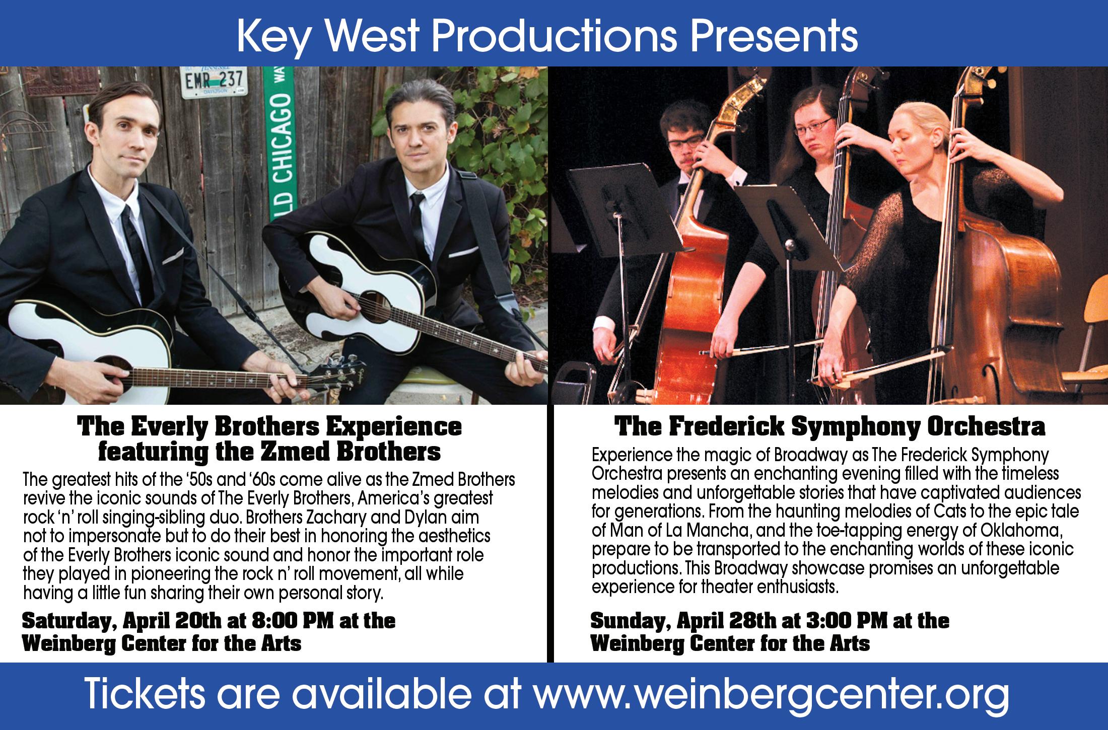 Weinberg Center for the Arts, 20 W. Patrick St. The greatest hits of the ‘50s and ‘60s come alive as the Zmed Brothers revive the iconic sounds of The Everly Brothers, America’s rock ‘n’ roll singing-sibling duo. 8 p.m. $. 301-600-2828. www. weinbergcenter.org