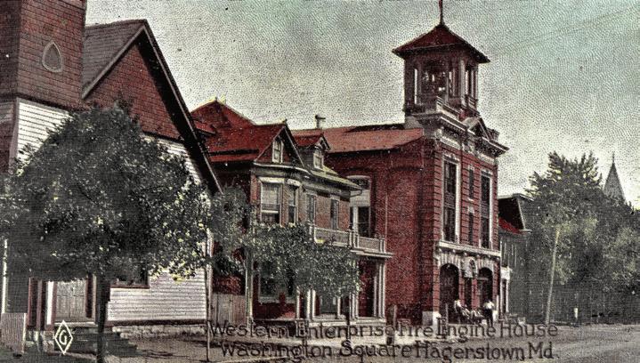 TIME TRAVELER MIKE MAROTTE III TAKES US BACK IN HISTORY WITH THE HAGERSTOWN WESTERN ENTERPRISE FIRE COMPANY NO. 4. As the city was growing during the mid-1860s, a definite need developed for an additional fire company on the west end of the city.Citizens of the area met to start a new fire company that would be known as the Western Enterprise Fire Company No. 4. This fire company was incorporated on September 19, 1872. This company’s first piece of fire apparatus was a hand-drawn pumper nick named “Big Six.” This hand pumper was used originally by Hagerstown’s Independent Junior Fire Company, and then it was given to the newly organized Western Enterprise Fire Company. Here are four different views from the early 1900s of the Western Enterprise Fire Company No. 4.
