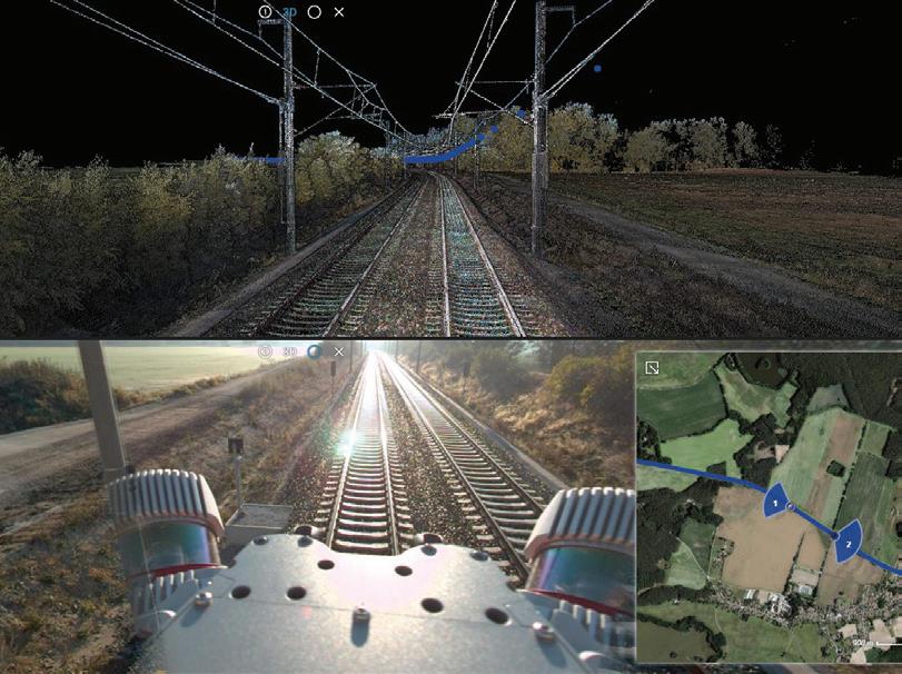 High-resolution immersive imagery, high-density colorized point clouds with accurate color projections, and scene inspection capabilities enable new workflows, such as automatic crack detection. In urban environments or along rail tracks, users can zoom in and easily see small details on street signs, railway signals, and other asset or as-built features. In open areas and large cities, users can capture more detail on distant objects, such as electrical or fiber poles.