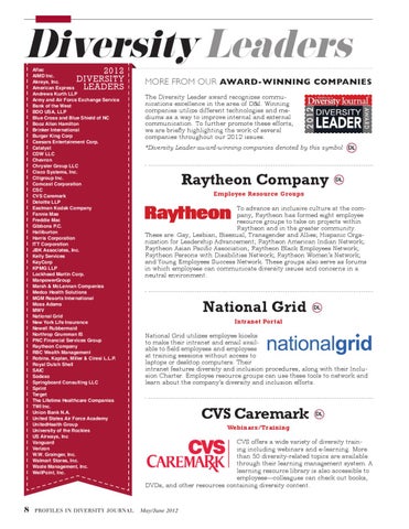 MORE FROM OUR AWARD-WINNING COMPANIES The Diversity Leader award recognizes communications excellence in the area of D&I. Winning companies utilize different technologies and mediums as a way to improve internal and external communication. To further promote these efforts, we are briefly highlighting the work of several companies throughout our 2012 issues. *Diversity Leader award-winning companies denoted by this symbol: DL