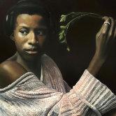 Drawingfrommemoryremainscentralto Eyanah’sapproach.Byembracing imperfec�on,sheinvitesindividualityand narra�veambiguityintoeachpain�ng. Whilehercomposi�onsleantoward surrealism,herfounda�oninrealismiss�ll evidentthroughcarefullymodelledskin tones,consideredshadows,andsubtle reflec�onsinfabric.Thisbalancebetween technicalcontrolandimagina�vedistor�on createsadis�nc�vevisualtensionacrossher work.