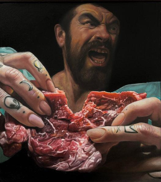 Herworkisinspiredbyanimalsinnatureand thedynamicsbetweenpredatorandprey— howtheirrela�onshipsareshapedby ins�nct,survival,andpower.Shetakesnote ofhowthisleadstoaggressionandhowitis formedasaresponse,protec�on,ordefense. Animalsinherworkhelpshowthe progressionofaggression.