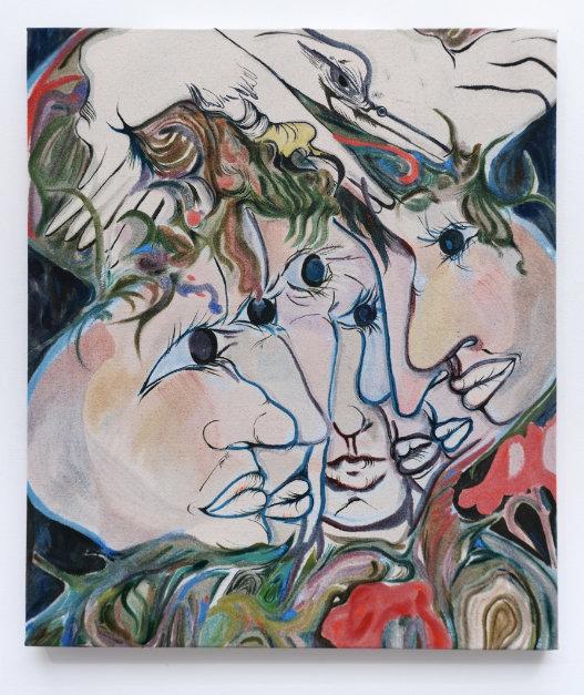 Shapedbyextensivetraveltoover30 countrieswithherfamily,hervisuallanguage drawsfrombothexternallandscapesand internalstatesofbeing.Herpain�ngsinvite viewersintoaspaceofduality—wheregrief