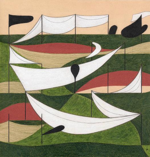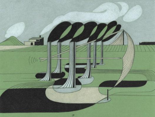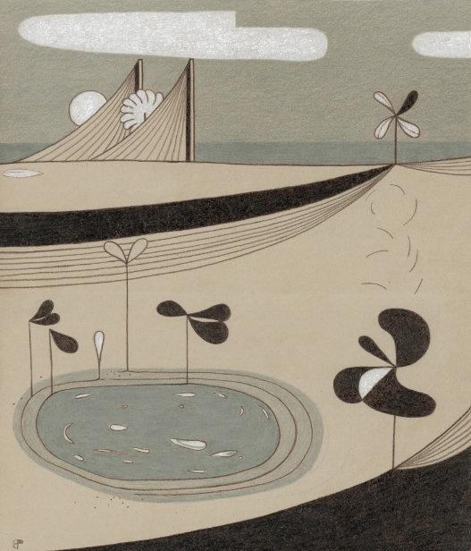 fascinatedbymodernabstrac�on,these elementscomeintoplayinBerg’swork throughsimplifiedlandscapes.Mostly,they emergeasstorytellingsystems.