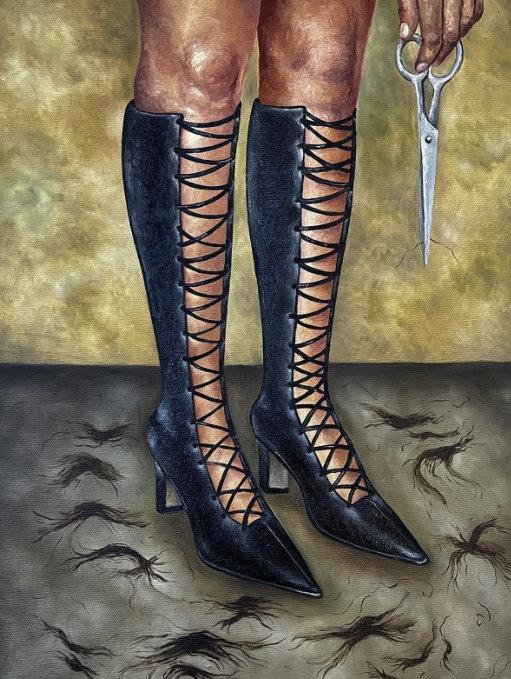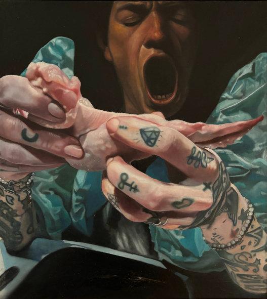 Image: “TheMotherWoundandFailedFer�lity” Self-Potrait 83.82cmx57.15cm h�ps://www.instagram.com/taylorleigh.studios/