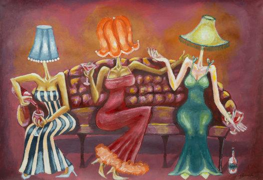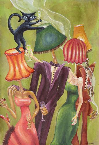 EyanahisaBri�shpainterbasedinExeter, Devon,workingprimarilyinacrylic.Her prac�cecentresonsurreal,human-like figuresdis�nguishedbyelongatednecks, dispropor�onatelimbs,andvintage lampshadesinplaceofheads—amo�fthat hasquicklybecomethesignatureofher emergingbodyofwork.