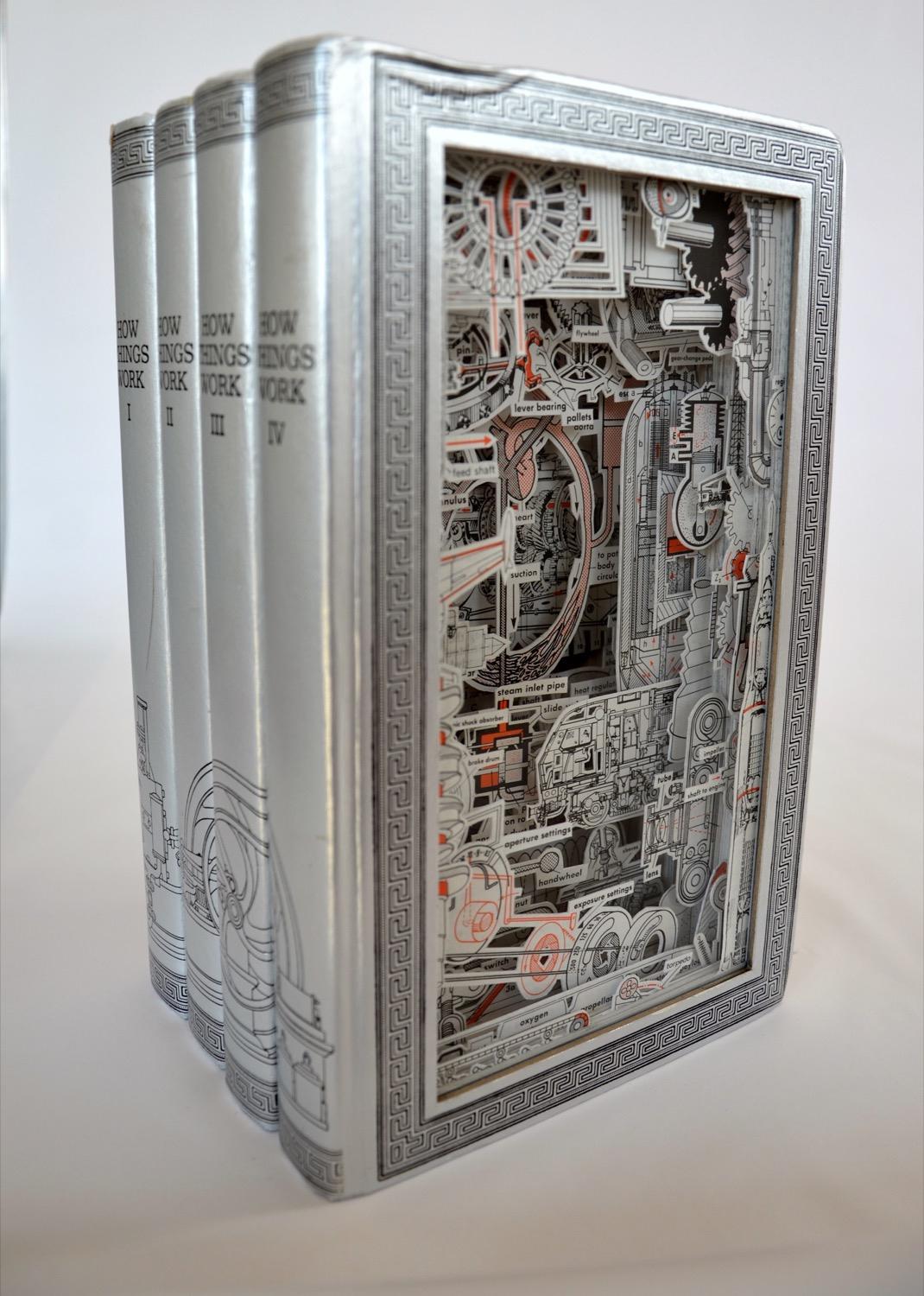 JuliaStrandisaprofessorandar�stfromMinnesota.Sherescuesusedbooksfromgarage sales,second-handshops,andestatesales.UsingX-actoknives,rotarycu�ers,and tweezers,shedeconstructsthesebooksandrefashionsthemintotopographicallandscapes, paperspecimenboxes,andthree-dimensionalcollagesoftheoriginalcontents.Allthe imagesshownineachbookcarvingcomefromthebookitself.