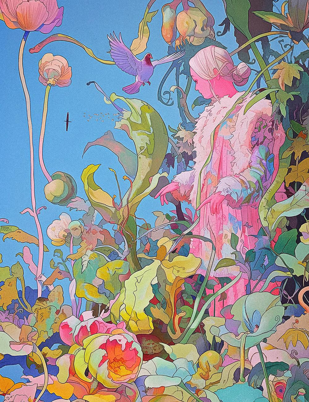 Herstyleisablendofso�linesandcolorgradients, alwayspunctuatedwithcontras�ngshapesthat surpriseanddisruptthear�s�crepresenta�on.