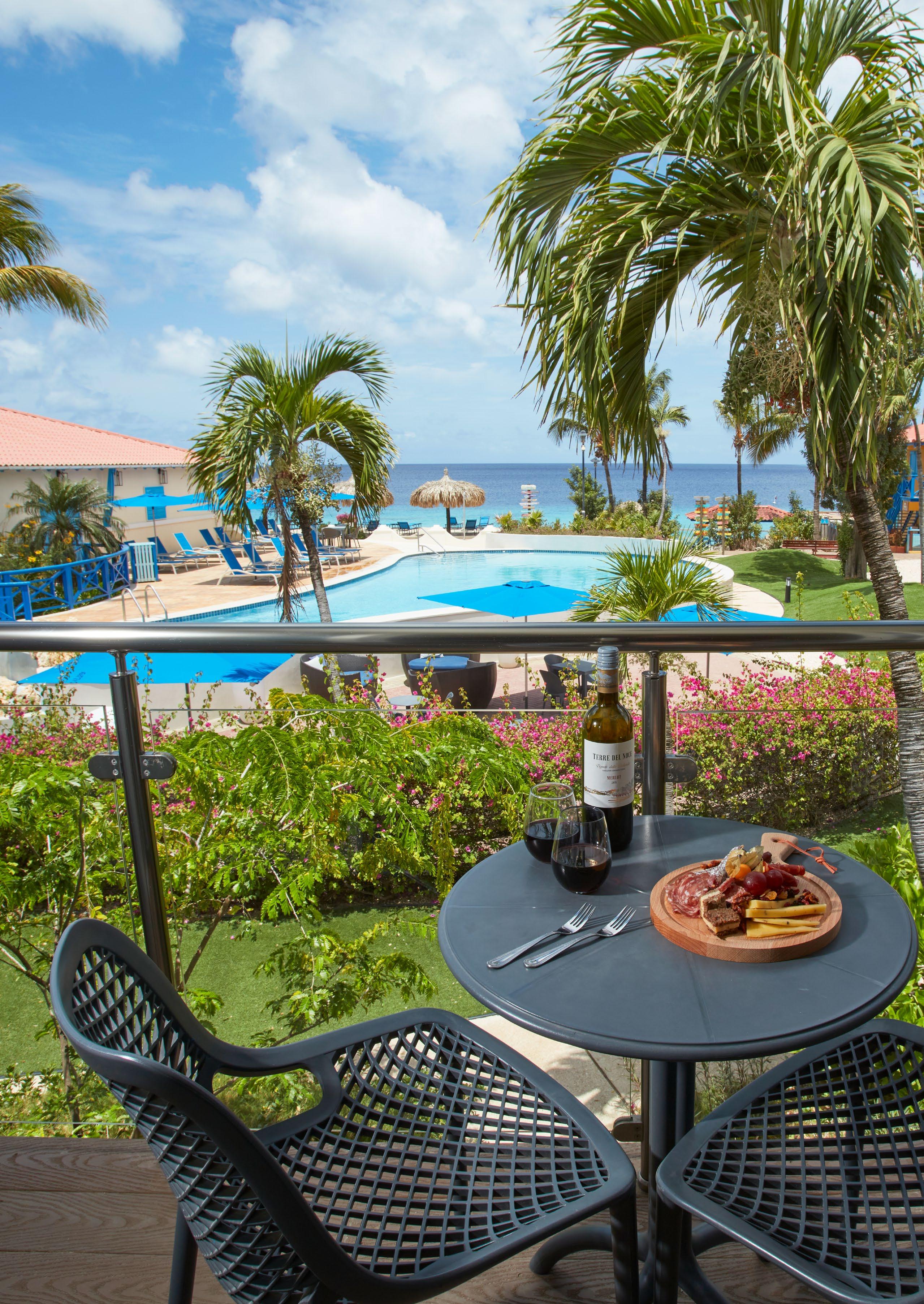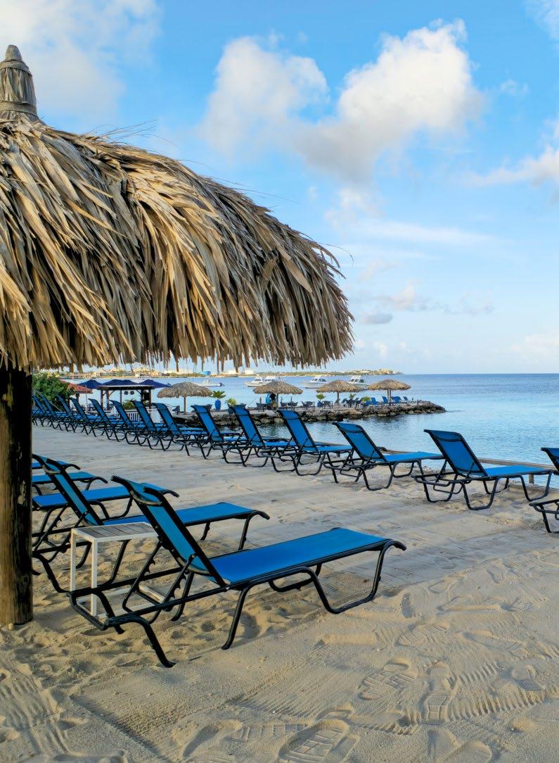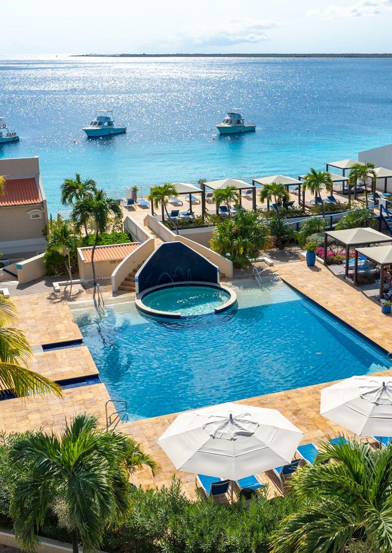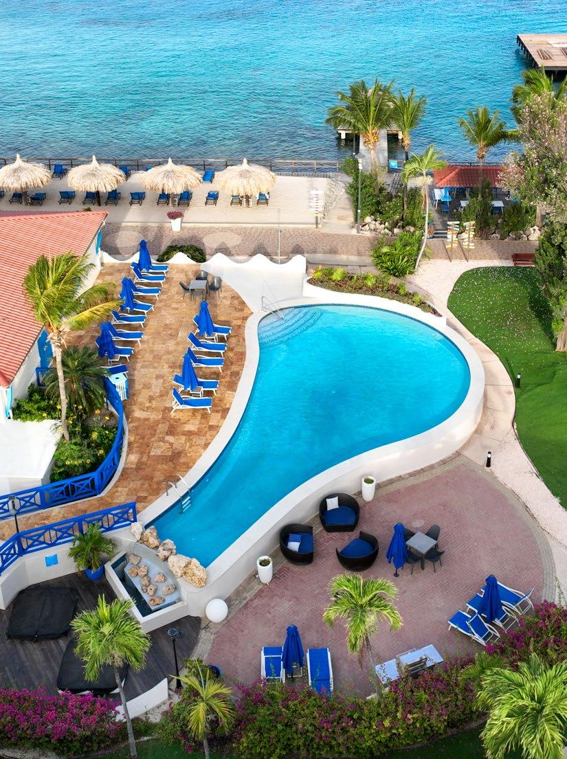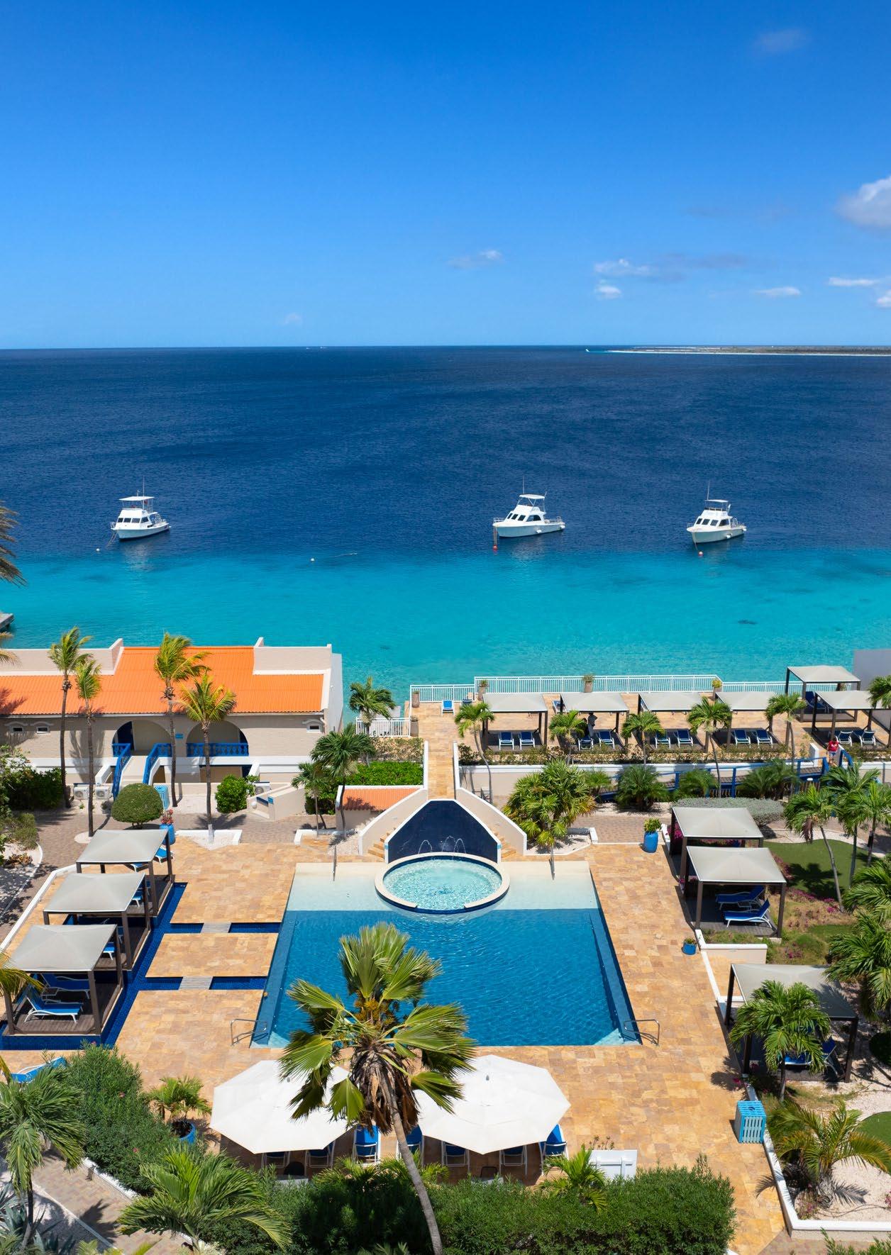 Immerse yourself in fifty shades of blue at our spectacular oceanfront resort conveniently located just minutes from the airport and a 5-minute walk to the island’s main town, Kralendijk. Colorful and laid-back, this water-lover’s paradise offers two sparkling pools, a day spa and fitness center, weekly activities, delicious dining, an intimate casino, and an award-winning PADI five-star dive operation with a fleet of six dive boats, private dive lockers, a dive shop with equipment rental, and a famed house reef you can explore 24/7.