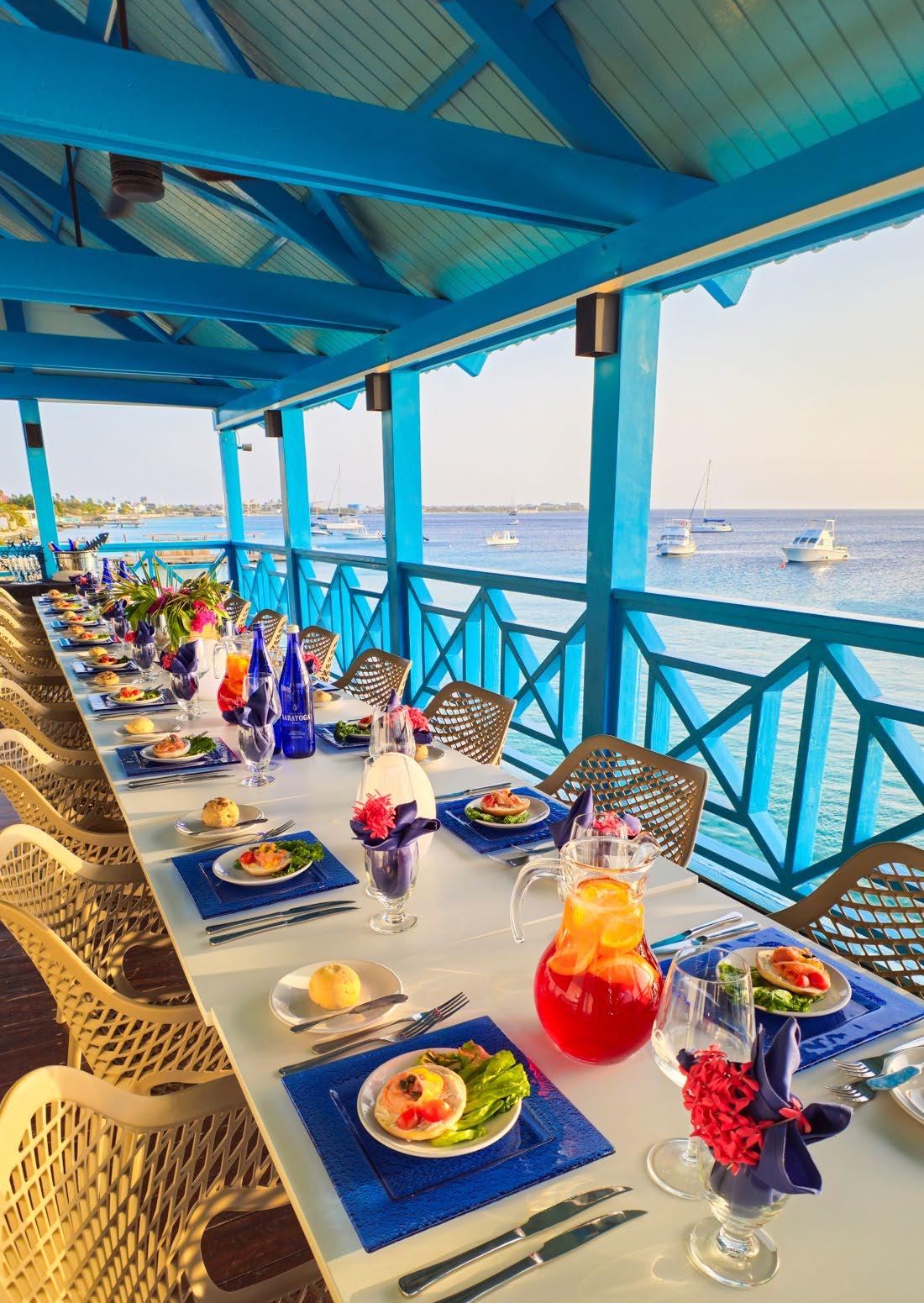 This semi-private location offers endless ocean views with tables overlooking the clear water below. Ideal for receptions and group gatherings, this vibrant location can be transformed to fit your needs.