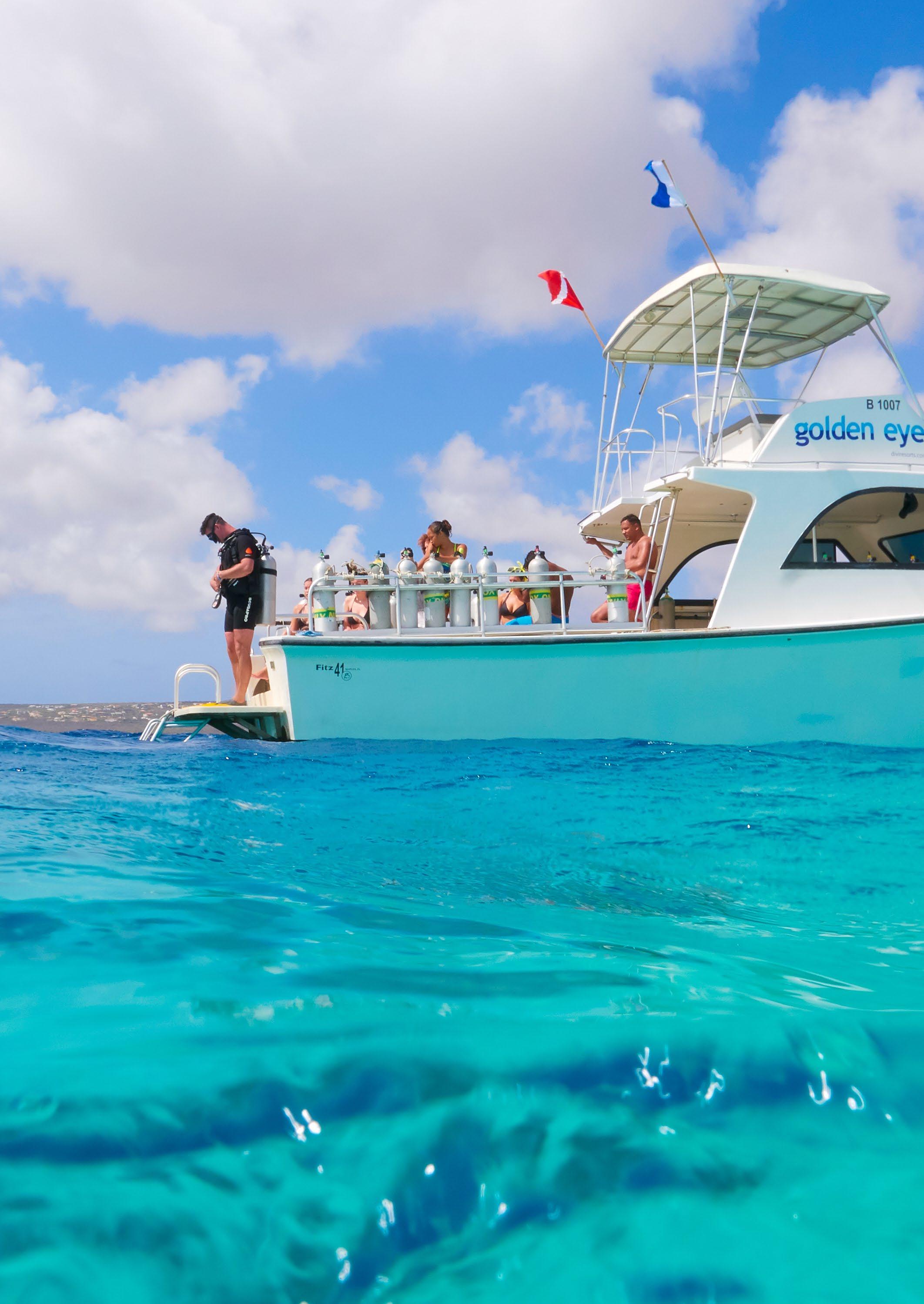 We’ve got all of your boat diving needs covered at Divi Dive Bonaire. Dive in to an exhilarating week of scuba diving adventures with our 7-Night, 2-Tank Boat Dive Package, which includes a 7-night stay, daily breakfast, 11 boat dives, unlimited shore diving, round-trip airport transfers, a welcome cocktail, and complimentary Wi-Fi.