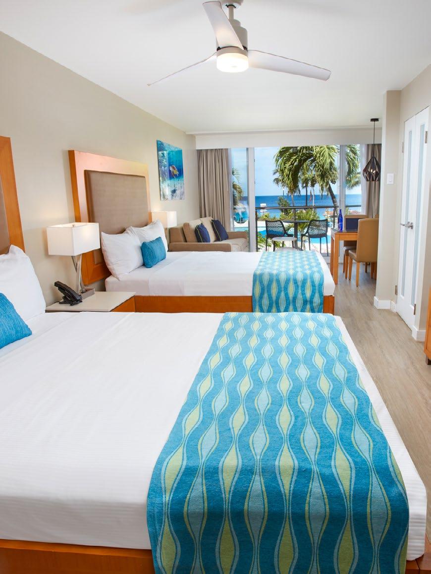 Take a break from the sun in your air-conditioned standard, deluxe, or studio room adorned with modern decor. Dive groups will love our newly renovated studios situated across from Divi Dive Bonaire with kitchenettes, dining areas, patios or balconies, and convenient dive lockers on the pier. Or book our deluxe guestroom for an oceanfront experience where you can watch fish swim directly below your balcony.