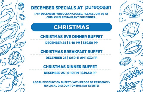 17TH DECEMBER PUREOCEAN CLOSED. PLEASE JOIN US AT CHIBI CHIBI RESTAURANT FOR DINNER.