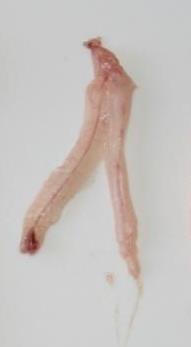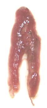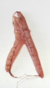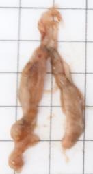Gonads are small. Ovaries wine red and clear, torpedo-shaped