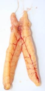 The testes are small, very thin and flat, pale and transparent (Annex I – Table II – Id.1).