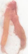 Testes with sperm remain and shrivelled at the anus end