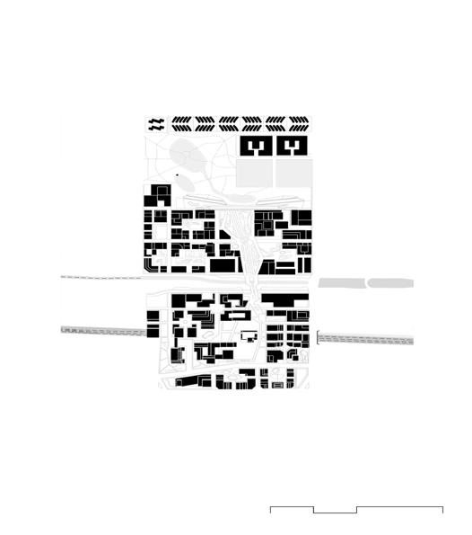 Figure ground showing the difference between existing and proposed footprint. Example of typologies proposed for the precinct.