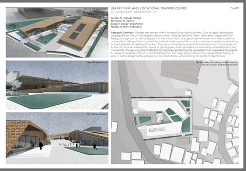 Gui de:Ar .As hwi nPar mar S emes t er10,Year5 S ubj ect :Des i gnDi s s er t at i on Nat ur eofWor k:I ndi vi dual Res ear chS ummar y:Vi l l agesar epr es entwi t hi nMumbai s i ncehi s t or i cal t i mes .Duet or api dur bani s at i on andex pans i on,t heci t ydevel opedar oundt hem.T hes es et t l ement s ,whi chhavebeendependenton f i s hi ngandagr i cul t ur e,ar eabs or bedi nt ot heur banf abr i candgr adual l ywi t hdr aw f r om t hei rt r adi t i onal occupat i ons .Vi l l agesf or m apar toft hecul t ur al l ands capeoft hecount r yandar ees s ent i al i nmai nt ai ni ng cul t ur al di ver s i t yandhi s t or i cal cont ex t .T heyhavet r emendouspot ent i al t odevel opduet ot hei rpr ox i mi t y t ot heci t y.T husani nt er vent i onneedst obepr opos edt hatcanenhancet hes our cesofl i vel i hoodf ort he communi t y,t husr evi vi ngt het r adi t i onal occupat i ons ,pr ot ect i ngt heecos ys t em t hati sr equi r edt os uppor t i t ,pr es er vet hehi s t or i cal andcul t ur al her i t aget hathasbeenpas s eddowns i ncegener at i ons ,f i ndi nga wayt obet t eri nt egr at et hevi l l agesi nt ot heur banf abr i cwi t houtl os i ngi t si dent i t yi nt hepr oces s . Vi ew oft heent r ance